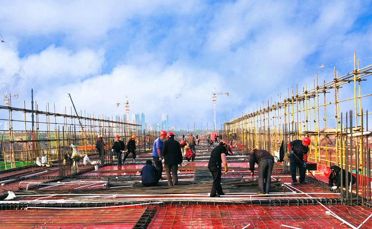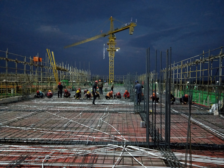 公司領(lǐng)導(dǎo)多次親赴現(xiàn)場協(xié)調(diào)資源配置,要求集中優(yōu)勢力量,全力支持六安一中搶工,物資部門、集采部門直接對接馬鋼生產(chǎn)廠家,成立協(xié)調(diào)小組,確保鋼材充足供應(yīng);在設(shè)備租賃公司支持下,項(xiàng)目部僅用7天時(shí)間完成15臺塔吊等大型設(shè)備安裝;公司還從優(yōu)選班組庫中篩選出鋼筋班組3個(gè)、木工班組3個(gè)、瓦工班組4個(gè)、外架班組4個(gè),振皖勞務(wù)公司從周邊地區(qū)協(xié)調(diào)大量技術(shù)工人專門組建搶工突擊隊(duì)。
