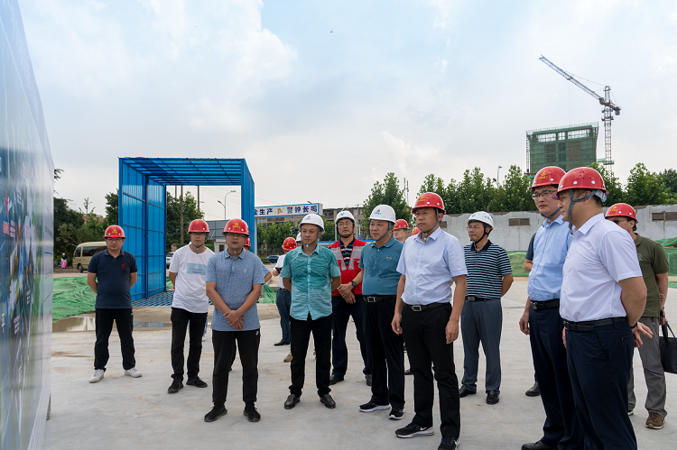 葛斌首先聽取了項目建設(shè)情況簡要匯報,實地察看了工程進度,詢問了項目施工階段出現(xiàn)的重難點,對項目部不怕困難、迎難而上的斗志表示贊許。他要求項目部一定要排除萬難,全力以赴確保8月15日樁基節(jié)點目標及其余各大節(jié)點目標按時完成。