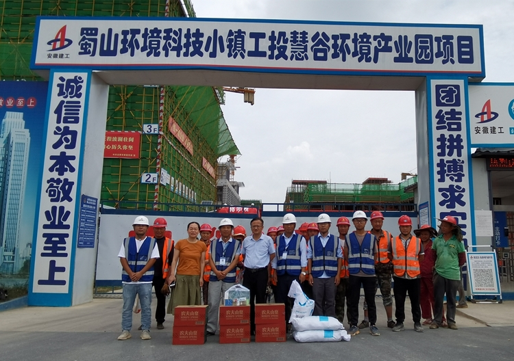 工投蜀山慧谷環(huán)境產(chǎn)業(yè)園項(xiàng)目正值主體結(jié)構(gòu)施工階段,現(xiàn)場(chǎng)施工人員多、作業(yè)面廣,武朝暉來(lái)到施工現(xiàn)場(chǎng),慰問(wèn)項(xiàng)目管理人員及現(xiàn)場(chǎng)施工作業(yè)人員,給現(xiàn)場(chǎng)施工人員送來(lái)了清涼油、風(fēng)油精、十滴水、綠豆、礦泉水等降暑防暑物資,并詳細(xì)了解了項(xiàng)目目前進(jìn)展情況及項(xiàng)目部在高溫天氣所采取的應(yīng)對(duì)措施,要求項(xiàng)目部要嚴(yán)格按照公司防暑降溫要求開(kāi)展施工,同時(shí)做好常態(tài)化疫情防控。