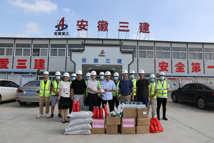 7月下旬至8月初,公司黨委書記、董事長左登宏,黨委副書記、總經(jīng)理何洪春等班子成員分別帶隊,深入項目工地、工廠車間慰問奮戰(zhàn)在施工一線的干部職工,為他們加油鼓勁、提振士氣,同時給他們送去了綠豆、白糖、毛巾、十滴水、仁丹等防暑降溫物品。
