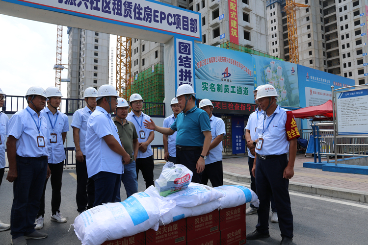 在十二公司肥東縣撮鎮(zhèn)振興社區(qū)集體建設(shè)用地租賃住房建設(shè)EPC項目,公司黨委副書記、總經(jīng)理何洪春為項目“送清涼”并與項目管理人員親切交談,他叮囑項目要時刻關(guān)注一線人員夏季高溫作業(yè)安全,充分做好各類突發(fā)事件預(yù)案,要繼續(xù)扎實做好重點民生工程建設(shè),認真借鑒公司EPC項目建設(shè)的成功經(jīng)驗,爭取通過扎實的質(zhì)量管理、嚴謹?shù)陌踩芾?、精細化的成本管控為各方交上一份滿意的答卷。