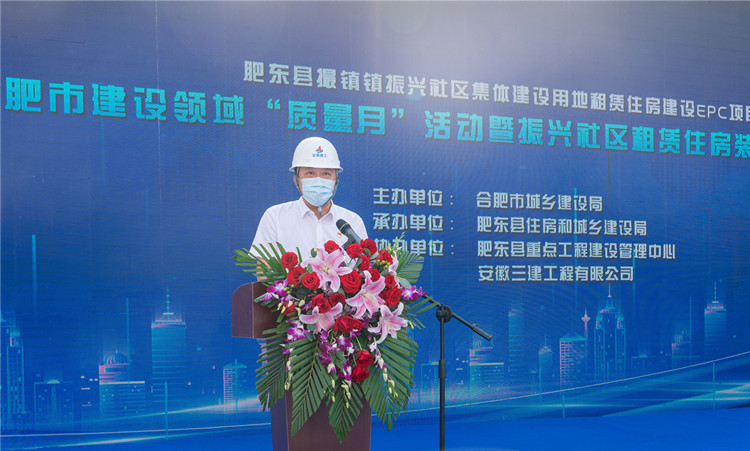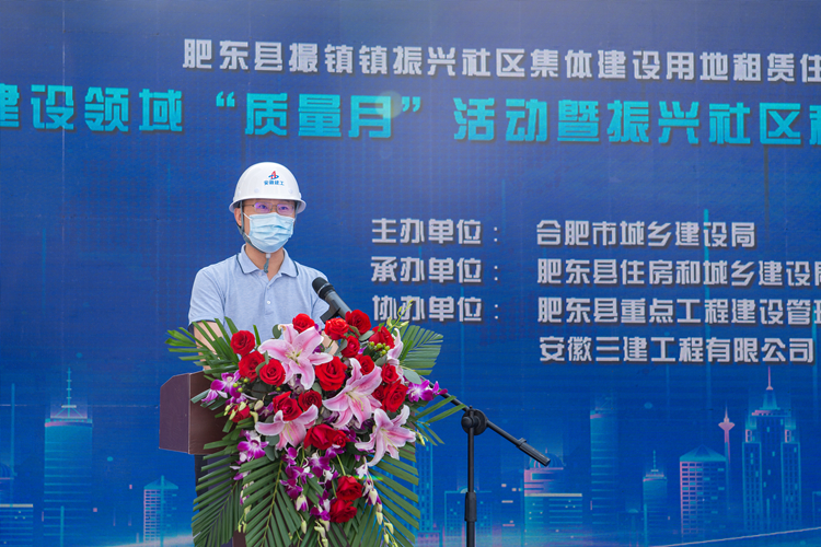 為不斷提高裝配式建筑制造建造水平,大力推進(jìn)質(zhì)量強(qiáng)市建設(shè),9月18日上午,合肥市建設(shè)領(lǐng)域2021年“質(zhì)量月”活動(dòng)暨振興社區(qū)租賃住房裝配式建筑現(xiàn)場(chǎng)觀摩會(huì)在安徽三建肥東振興EPC項(xiàng)目舉辦。合肥市城鄉(xiāng)建設(shè)局總工程師王榮村,肥東縣委常委、副縣長(zhǎng)王偉程、安徽三建公司黨委副書(shū)記、總經(jīng)理何洪春等出席會(huì)議。會(huì)議由合肥市綠節(jié)中心主任杜德平主持。