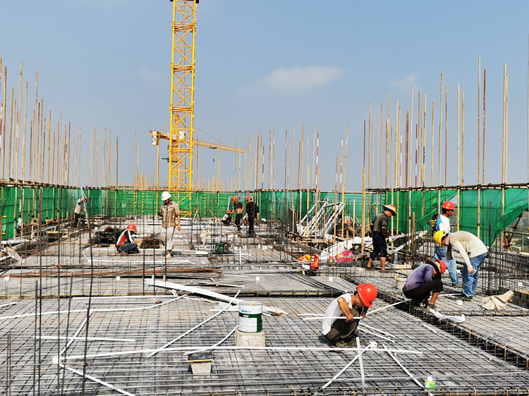 為了按時(shí)完成甲方的預(yù)售節(jié)點(diǎn),迅速推進(jìn)工程進(jìn)度,分公司上下齊心協(xié)力。一方面,分公司副經(jīng)理魯豫、孫剛不間斷地蹲點(diǎn)項(xiàng)目,統(tǒng)籌協(xié)調(diào)項(xiàng)目重難點(diǎn)工作,合理調(diào)配現(xiàn)場(chǎng)人材機(jī),并抽調(diào)收尾項(xiàng)目項(xiàng)目經(jīng)理、技術(shù)負(fù)責(zé)、生產(chǎn)經(jīng)理等5名骨干人員到該項(xiàng)目,他們主動(dòng)分片包干,保棟號(hào)、搶進(jìn)度,經(jīng)過(guò)25天的艱苦努力,成果顯著,滿足施工節(jié)點(diǎn)要求;另一方面,項(xiàng)目積極協(xié)調(diào)樁基單位夜以繼日,迅速出土,每天保持6臺(tái)以上施工挖機(jī),木工班組和鋼筋班組每棟樓人數(shù)維持在40人以上,確保一天完成一棟基礎(chǔ)。重點(diǎn)工序采取24小時(shí)兩班倒作業(yè),做到“人歇機(jī)不歇”。為了不影響第二天鋼筋綁扎,防水施工通常是通宵加班完成。在塔吊、汽車吊覆蓋不到的地方,大家就手提、肩抗,晚上鋼筋綁扎完成,就馬上澆筑砼。此外,各項(xiàng)工序均要求班組長(zhǎng)根據(jù)施工進(jìn)度計(jì)劃目標(biāo)做好施工計(jì)劃安排,確保各工序的銜接和工序循環(huán),并針對(duì)每天完成的實(shí)際情況,實(shí)行動(dòng)態(tài)調(diào)整。