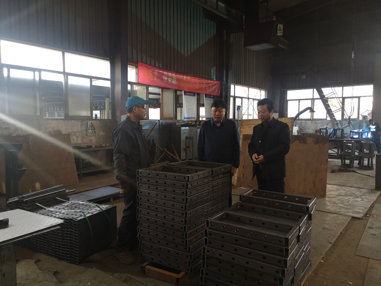 何洪春深入機加工車間、第二、三車間詳細了解了智能爬架、標準化產品的生產管理流程,焊接工藝及質量管理,并與車間職工交流,了解職工的思想狀況,隨后聽取了輕鋼龍骨公司相關負責人關于今年以來生產經營指標、目前存在困難等情況的匯報。