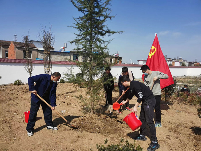 在植樹現(xiàn)場,黨員們認(rèn)真地挖土、扶苗、填土、澆水,干勁十足,高質(zhì)量完成了植樹任務(wù)。大家種下的不僅僅是一棵樹苗,而是一份希望,是對綠色家園、優(yōu)質(zhì)生態(tài)環(huán)境的向往。通過一上午的努力,400余株的雪松、紅木李、紅頭枝藍(lán)、高桿月季和紫薇等樹苗給荒地?fù)Q了“綠衣”。