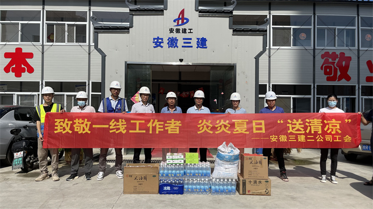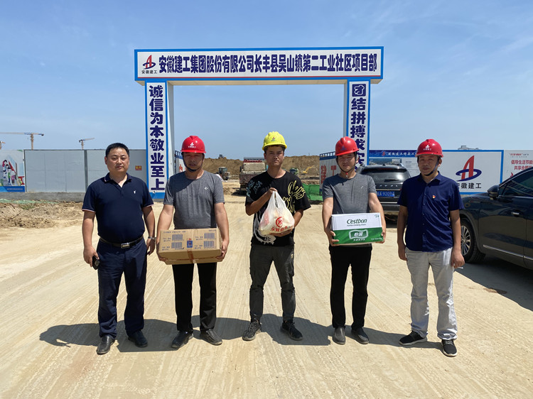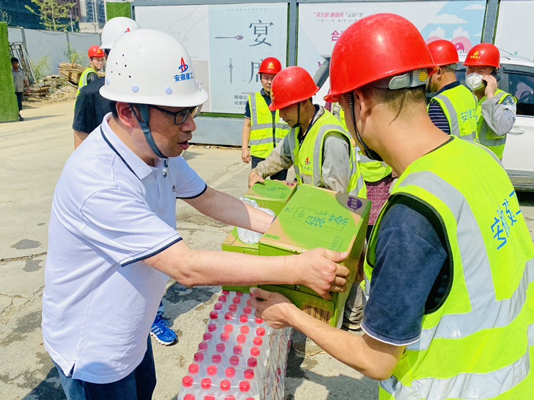 7月12日和7月13日上午,二公司副經理侯強、李國先后赴合肥市第一中學校園品質提升工程、新建藝術禮堂項目施工總承包工程(含安裝公司、裝飾公司職工)、合巢產業(yè)新城郭塘新村、映湖公租房項目施工二標段開展夏日“送清涼”活動,為70多名管理人員、400多名一線工人發(fā)放防暑降溫物品。