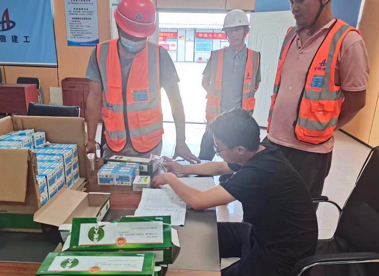 近日,七公司組織在合肥一中東校區(qū)和御景黃城兩個在肥項目開展“送清涼”活動。發(fā)放的防暑降溫物品包括人丹、十滴水、清涼油及藿香正氣口服液等,合肥一中東校區(qū)項目每天還為班組工人發(fā)放兩次雪糕冷飲。