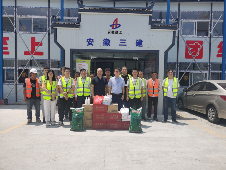 自7月13日開始,基礎公司領導班子成員先后前往長豐縣吳山鎮(zhèn)第二社區(qū)等6個項目開展送清涼活動,為在高溫下作業(yè)的一線工作人員送去礦泉水、綠豆、白糖、藿香正氣水等防暑降溫用品,給他們送去烈日下的清涼和關懷。 基礎公司經理、支部書記袁學明代表基礎公司,對奮戰(zhàn)在項目一線正在進行工程基礎施工的項目職工進行了慰問,同時提醒大家要靈活安排工作,注重崗位安全,在工作的同時要注意防暑降溫,增強自我安全防范意識,確保身體健康。