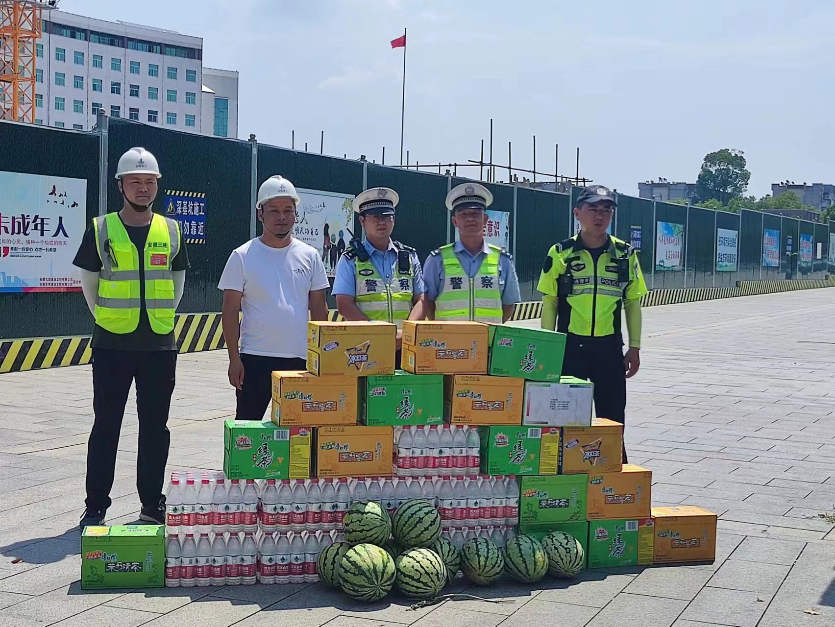 自開工以來,項目的順利推進離不開廬江縣交警中隊的大力支持。為了表達對交警同志們的感激之情,7月15日上午,水利交通公司廬江縣廬城鎮(zhèn)1#、2#、3#片區(qū)雨污分流改造及管網修復項目管理人員購買了送清涼物資2車,包括礦泉水、綠茶、西瓜等,讓堅守在一線的交警們感受到“警民一家親”的溫馨。
