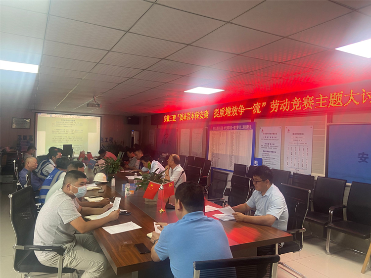 7月6日上午,項(xiàng)目部立即組織召開勞動(dòng)競賽動(dòng)員大會(huì)和主題大討論,成立競賽領(lǐng)導(dǎo)小組。根據(jù)全年生產(chǎn)經(jīng)營任務(wù)指標(biāo)對各項(xiàng)工作進(jìn)行分解,制定科學(xué)合理競賽方案,明確時(shí)間、節(jié)點(diǎn)及要求,層層落實(shí),責(zé)任到人。全體職工秉承“開工即決戰(zhàn),起步即沖刺”的理念,對管理人員進(jìn)行勞動(dòng)競賽方案交底,與班組簽訂勞動(dòng)競賽施工進(jìn)度責(zé)任狀,根據(jù)節(jié)點(diǎn)下發(fā)班組施工任務(wù)書,要求簽字確認(rèn),以保證現(xiàn)場工期進(jìn)度的及時(shí)性。項(xiàng)目部通過電子屏、宣傳欄、橫幅標(biāo)語、張貼作戰(zhàn)圖以及新聞宣傳等多種方式,加強(qiáng)競賽宣傳,營造大干快上競賽氛圍,同時(shí)做到“四個(gè)到位”,物資設(shè)備精準(zhǔn)到位、安全管控落實(shí)到位、技術(shù)質(zhì)量把控到位、后勤服務(wù)保障到位。