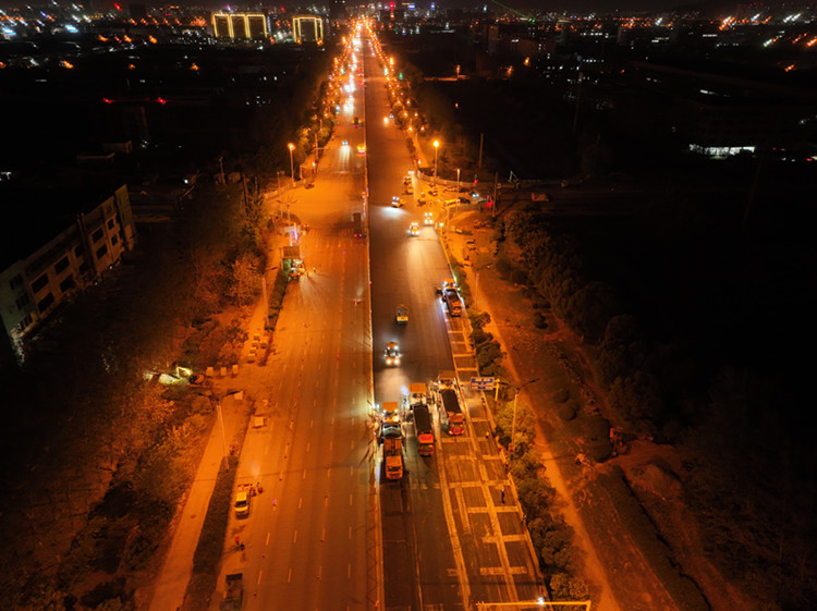 通過高效的調(diào)配資源,科學(xué)的工序安排,完備的服務(wù)保障,項(xiàng)目團(tuán)隊(duì)快速有效地完成了圍擋安裝、路面銑刨、路基病害處理、側(cè)石安裝、井蓋提升、防裂貼施工、瀝青油撒布、攤鋪瀝青、標(biāo)線劃定等在內(nèi)的一道道施工工序。最終實(shí)現(xiàn)了東半幅施工任務(wù)的提前完成。