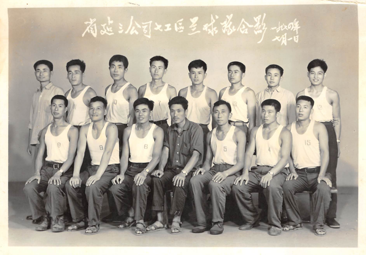 1973年三公司青年團(tuán)員在公司機(jī)關(guān)大院內(nèi)籃球場(蕪湖路現(xiàn)址)合影