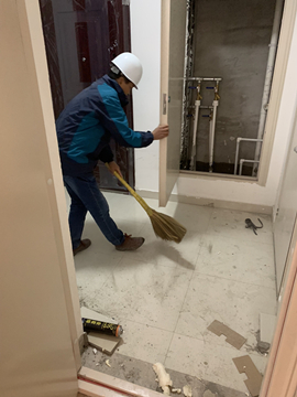 共有2名黨員,20多名團(tuán)員參加此次義務(wù)勞動(dòng)。在黨員同志的模范帶頭下,大家深入三期工程現(xiàn)場(chǎng),圍繞工程竣工收尾階段對(duì)高層25#、26#、27#樓進(jìn)行衛(wèi)生清理,主要清掃每層樓的公共區(qū)域及連廊部分。雖然天氣寒冷,但是大家熱情高漲、干勁十足。大家分工合作,由上至下,不放過每一個(gè)角落的垃圾。在3個(gè)多小時(shí)的共同努力下,大家共完成了102層樓的衛(wèi)生清理工作。