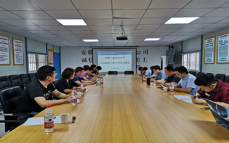 2020年7月19日上午9時,北京公司在天津碧錦園項目部舉辦了“2020級新入職大學生見面會”。北京公司副書記王忠,部分項目經理和老員工參加了本次見面會。