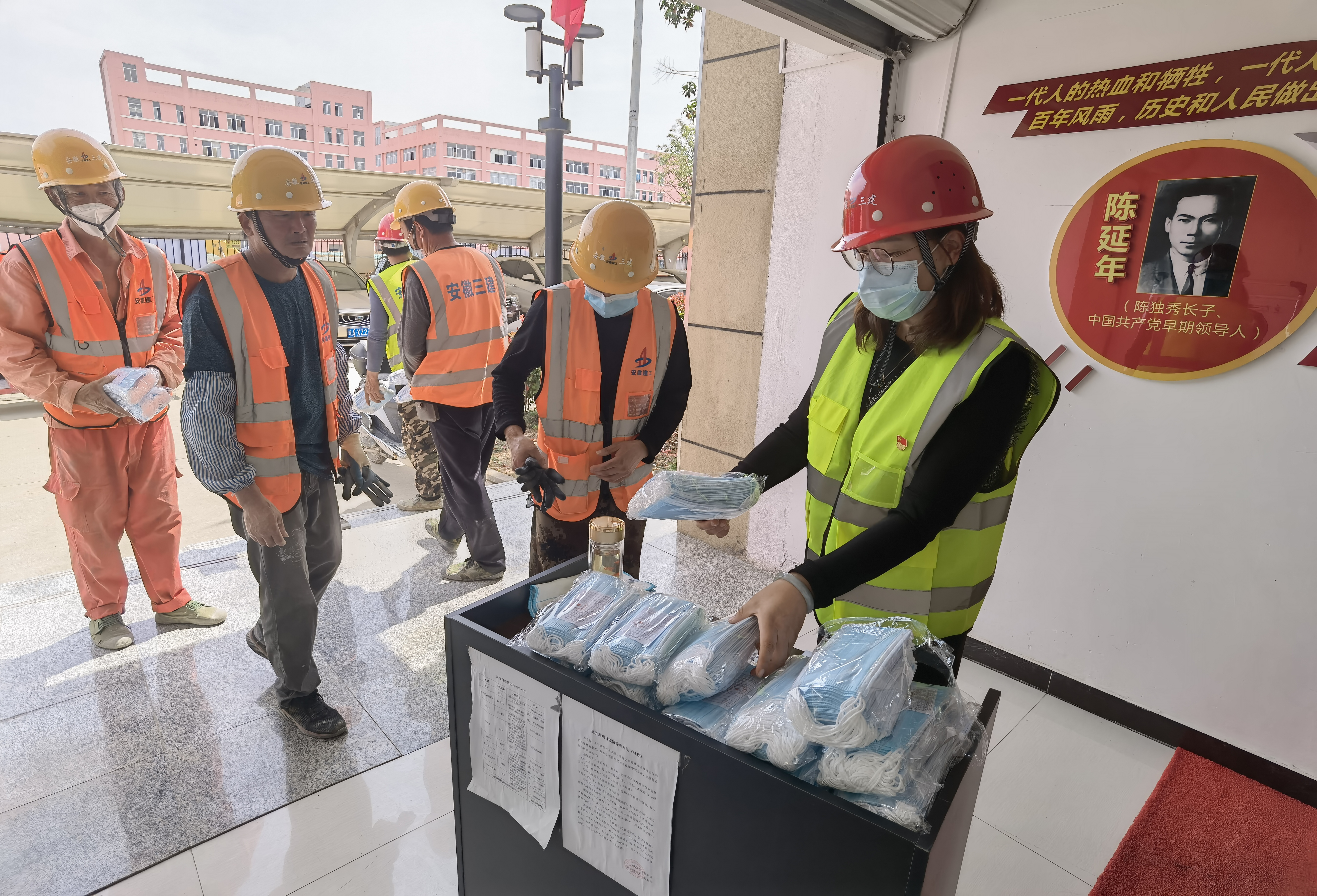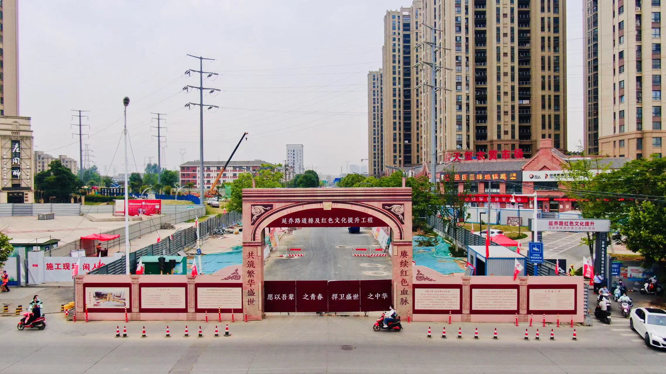 延喬路項(xiàng)目門樓圍繞著陳延年、陳喬年的一生經(jīng)歷,以安徽徽派建筑、廣州木棉花、法國凱旋門、上海石庫門元素設(shè)計(jì)而成,此設(shè)計(jì)雕塑模型將成為延喬路永久性建筑,被命名為穿越之門,具有重要的歷史意義。延喬路項(xiàng)目聯(lián)合黨支部積極打造黨員活動(dòng)室、農(nóng)民工業(yè)余學(xué)校,VR體驗(yàn)區(qū)、紅色長廊等“紅色陣地”,為項(xiàng)目黨員及一線員工提供良好的學(xué)習(xí)氛圍,感受紅色文化的強(qiáng)大力量,并在這文化的熏陶下,將紅色精神融入到項(xiàng)目生產(chǎn)建設(shè)中來,發(fā)揚(yáng)“特別能吃苦,特別能戰(zhàn)斗”的企業(yè)作風(fēng)。