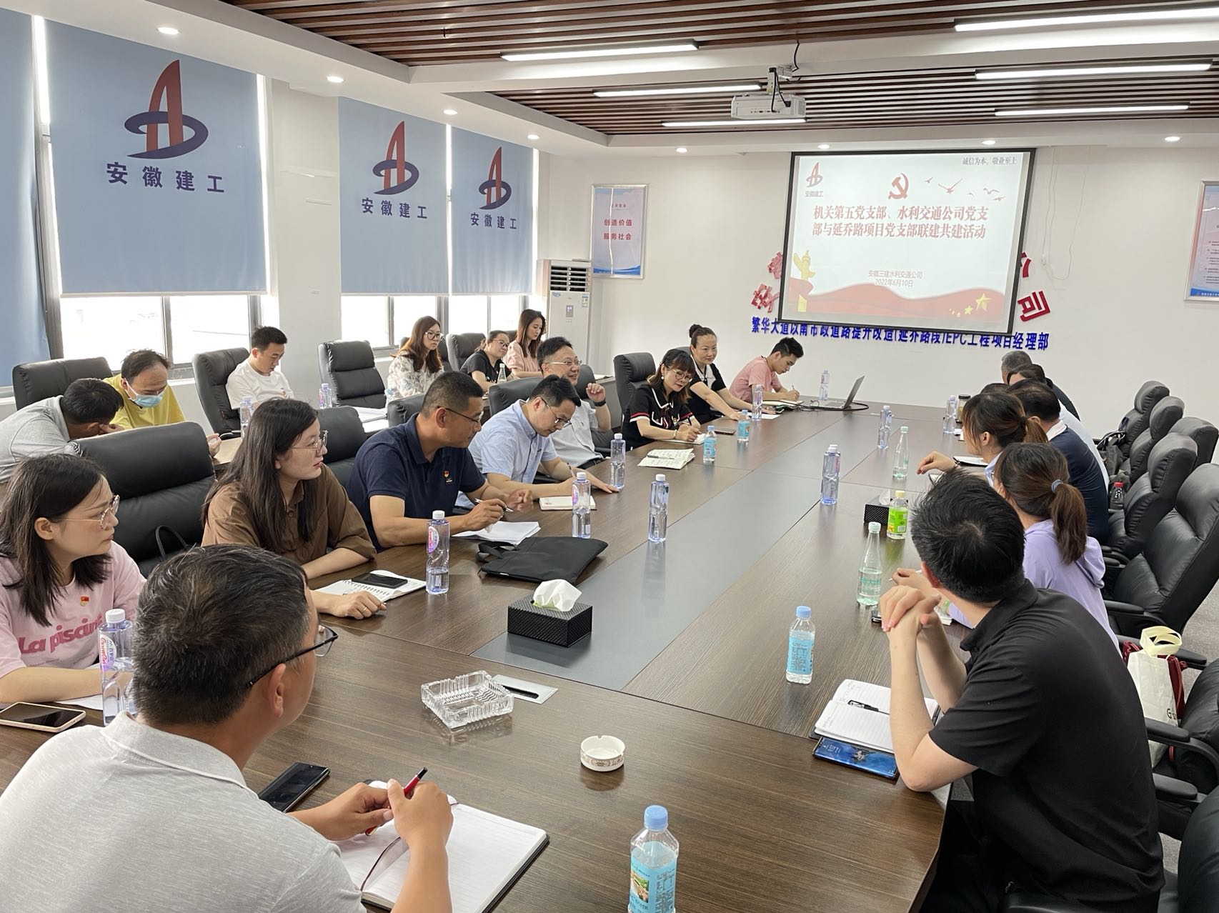 延喬路項(xiàng)目聯(lián)合黨支部,成立于2022年4月,由安徽三建水利交通公司牽頭,建設(shè)方、監(jiān)理方、設(shè)計(jì)方、分包方共同參與,現(xiàn)有項(xiàng)目黨員8人。項(xiàng)目黨支部在集團(tuán)及公司黨委的正確領(lǐng)導(dǎo)下,圍繞“五紅”創(chuàng)建內(nèi)容即傳紅色基因、建紅色陣地、開紅色講堂、爭紅色先鋒、創(chuàng)紅色聯(lián)建為出發(fā)點(diǎn)加強(qiáng)項(xiàng)目支部建設(shè)。積極學(xué)習(xí)貫徹習(xí)近平新時(shí)代中國特色社會(huì)主義思想,全面貫徹落實(shí)黨的十九大和十九屆歷次全會(huì)精神,增強(qiáng)“四個(gè)意識(shí)”、堅(jiān)定“四個(gè)自信”、做到“兩個(gè)維護(hù)”,堅(jiān)決執(zhí)行黨的路線方針政策,努力發(fā)揮基層黨組織的戰(zhàn)斗堡壘作用和黨員先鋒模范作用。