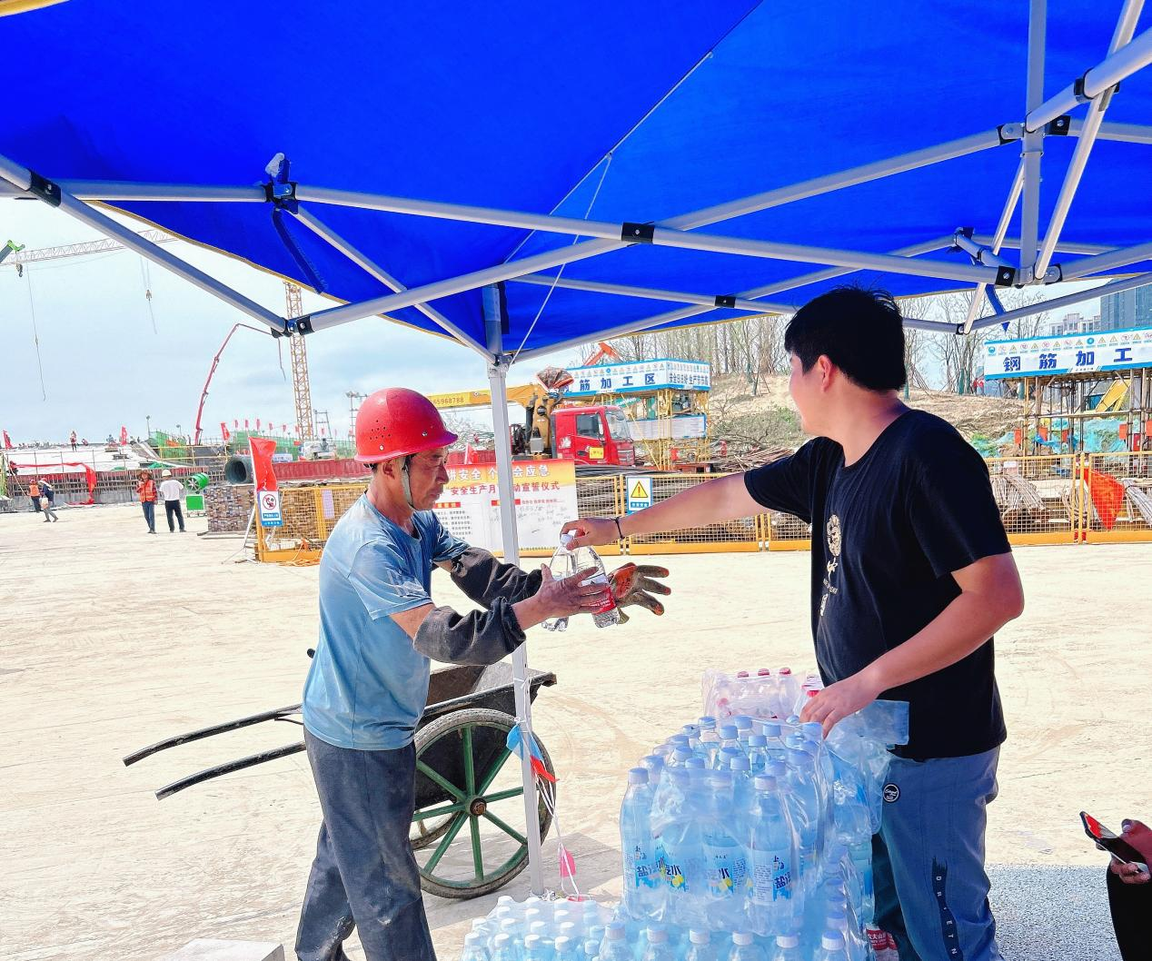 面對(duì)持續(xù)不斷的高溫天氣,做好后勤保障確保安全生產(chǎn)是項(xiàng)目建設(shè)的關(guān)鍵。建工三建組織開展“夏送清涼”活動(dòng),發(fā)放仁丹、綠豆、西瓜等防暑降溫物資,開展夏季防暑專項(xiàng)培訓(xùn),傳授夏季防暑基本知識(shí)、應(yīng)急措施等。加強(qiáng)員工關(guān)愛,豐富員工業(yè)余生活,定期開展交心座談會(huì),了解員工實(shí)際問題,解決員工實(shí)際困難,不斷提升員工幸福指數(shù)。