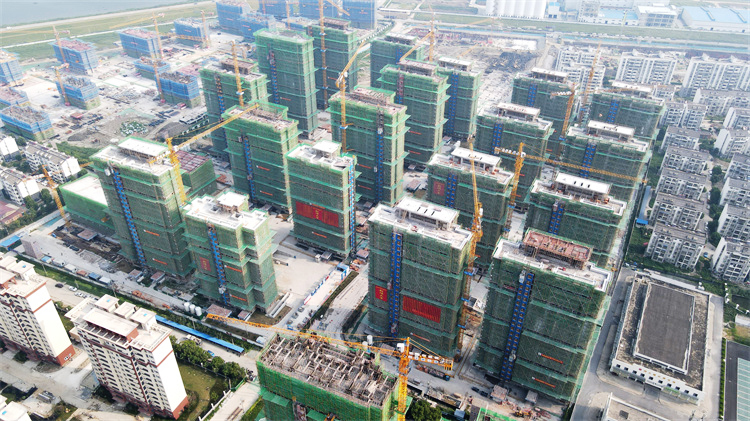 建工三建同大鎮(zhèn)集鎮(zhèn)安置點(diǎn)項目26棟單體結(jié)構(gòu)全部封頂
