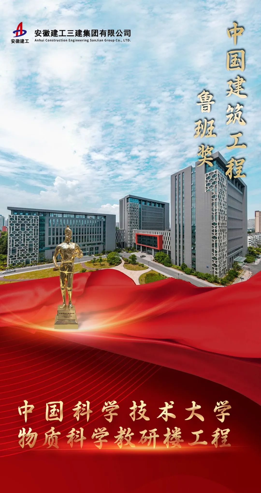 “魯班獎”是中國建筑行業(yè)工程質(zhì)量最高榮譽獎項,是建筑行業(yè)領(lǐng)域的“奧斯卡”,代表了我國當(dāng)前工程建設(shè)質(zhì)量的最高水平。中國科學(xué)技術(shù)大學(xué)物質(zhì)科學(xué)教研樓工程在建設(shè)過程中積極推廣綠色建造、智能建造、數(shù)字建造以及工業(yè)化等技術(shù),取得了良好的社會經(jīng)濟效益。