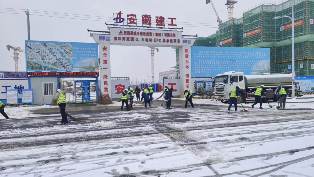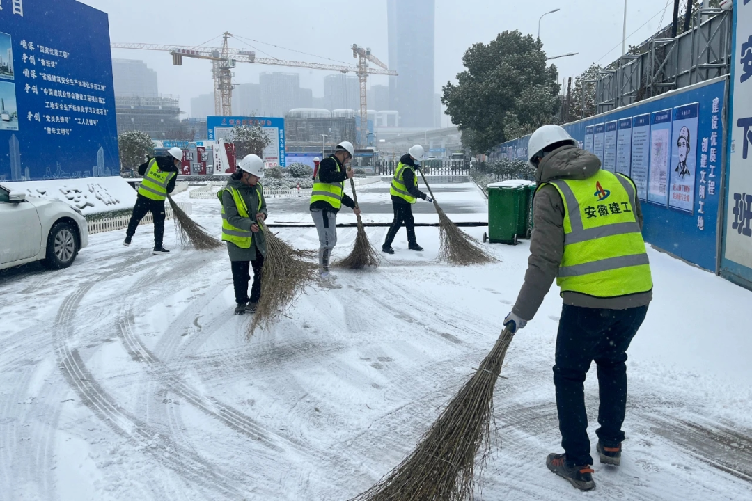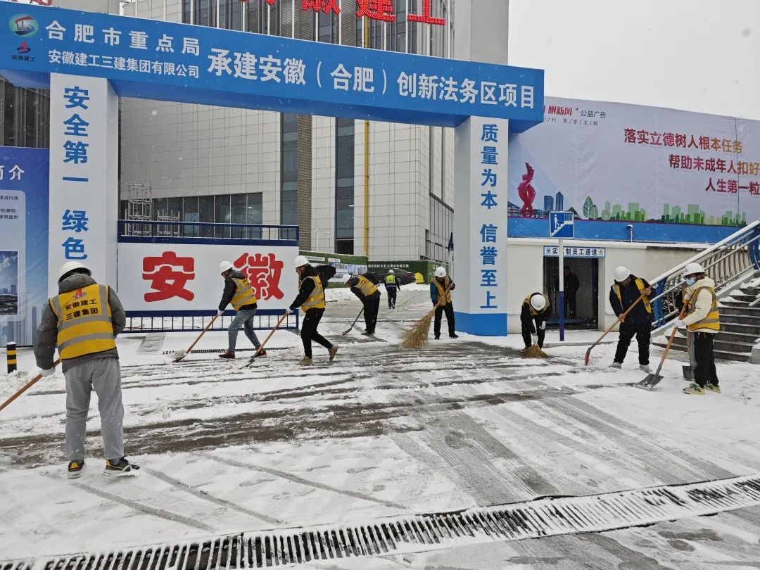 安徽(合肥)創(chuàng)新法務(wù)區(qū)項目組織全體管理人員清掃項目出入口及項目內(nèi)部道路上的積雪,為項目施工安全提供堅強保障。