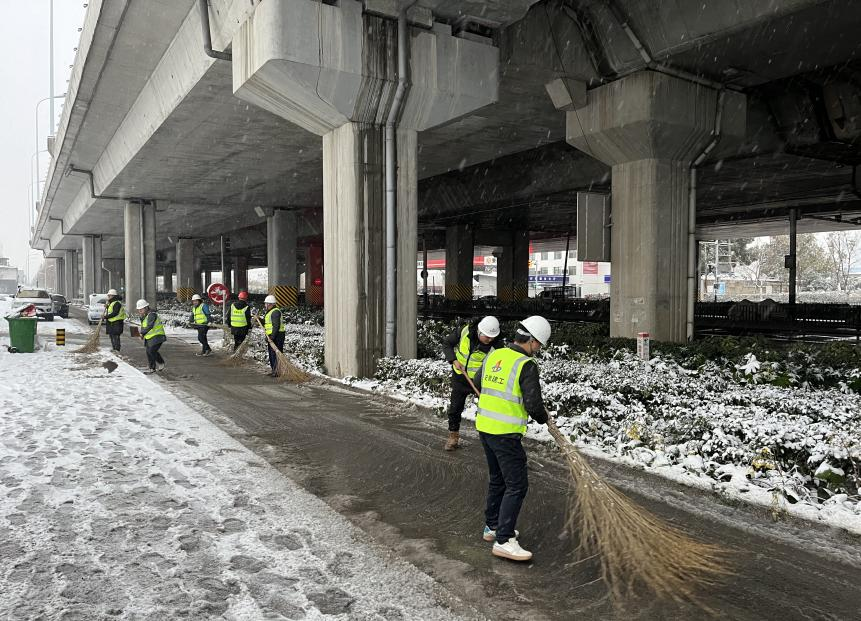 國家級蕪湖經(jīng)濟技術(shù)開發(fā)區(qū)汽車電子產(chǎn)業(yè)園基礎(chǔ)設(shè)施建設(shè)項目,項目職工組成黨員先鋒隊和青年突擊隊,對項目周邊市政道路、公交站臺及項目辦公區(qū)域開展掃雪除冰活動,減少雨雪天氣帶來的安全隱患,保障周邊居民及項目人員安全出行。
