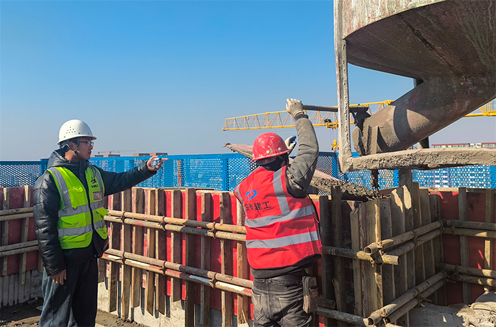 “即使寒風(fēng)刺骨,即使春節(jié)已至,但我愛崗的心熾熱無比,敬業(yè)的意志堅(jiān)不可摧!”技術(shù)員劉振宇在旁站2號(hào)樓架構(gòu)層混凝土澆筑工作。