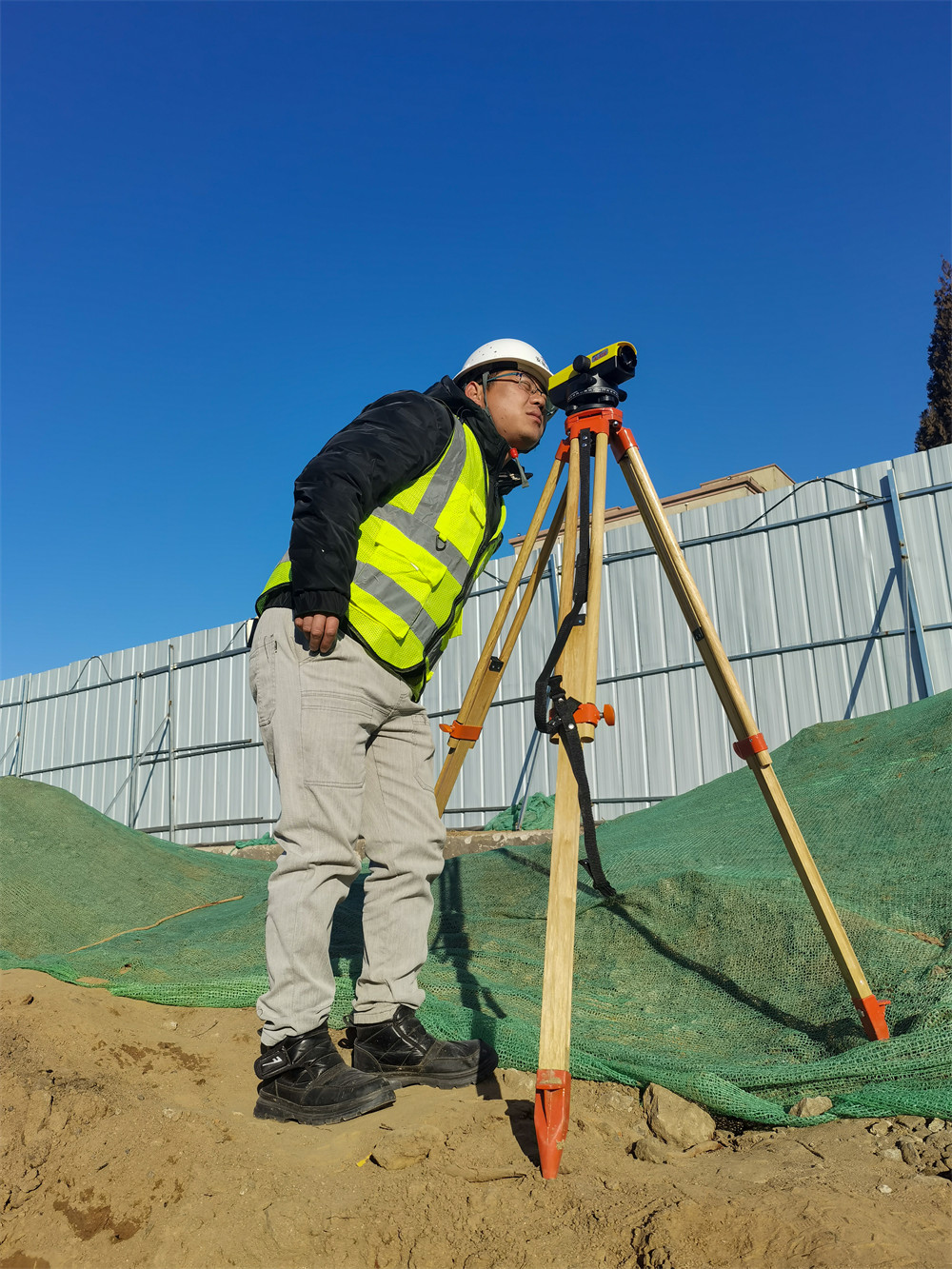 “傾心于事業(yè),專(zhuān)注于崗位,以實(shí)際行動(dòng)詮釋愛(ài)崗敬業(yè)!”測(cè)量員葉杰站在基坑邊進(jìn)行測(cè)量工作。