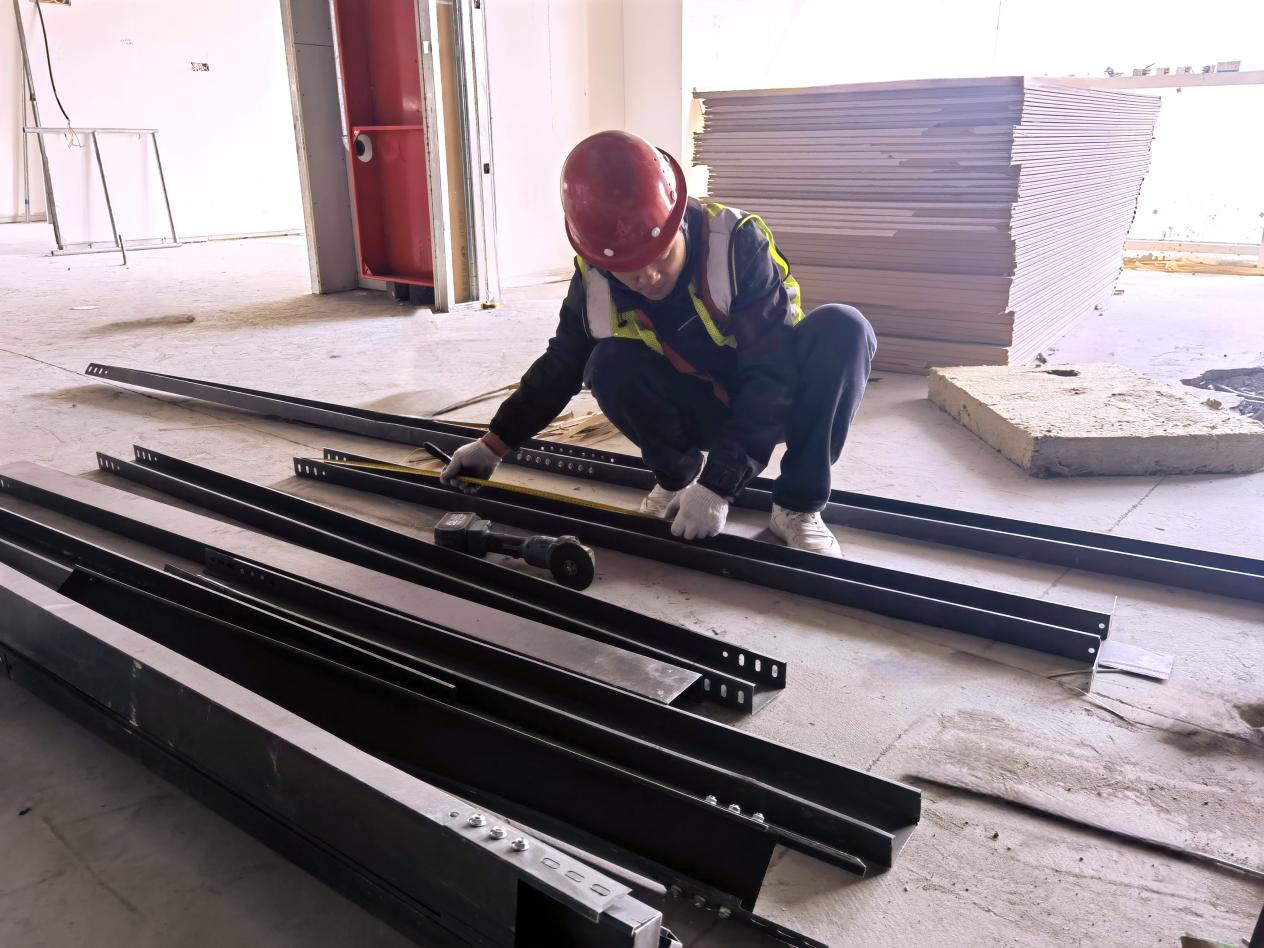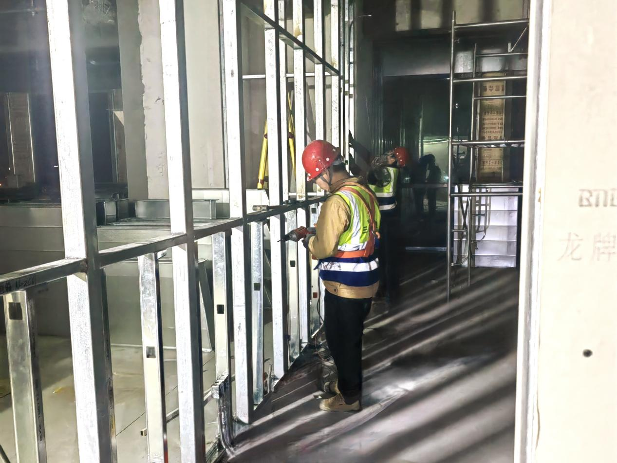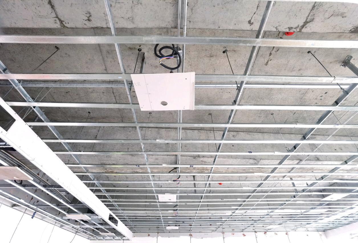 ②4至9層輕鋼龍骨隔墻已完成,吊頂絲桿龍骨完成95%,頂面封板完成90%,地磚鋪貼已完成,衛(wèi)生間防水已完成,墻面裝飾基層已完成,自流平完成30%;