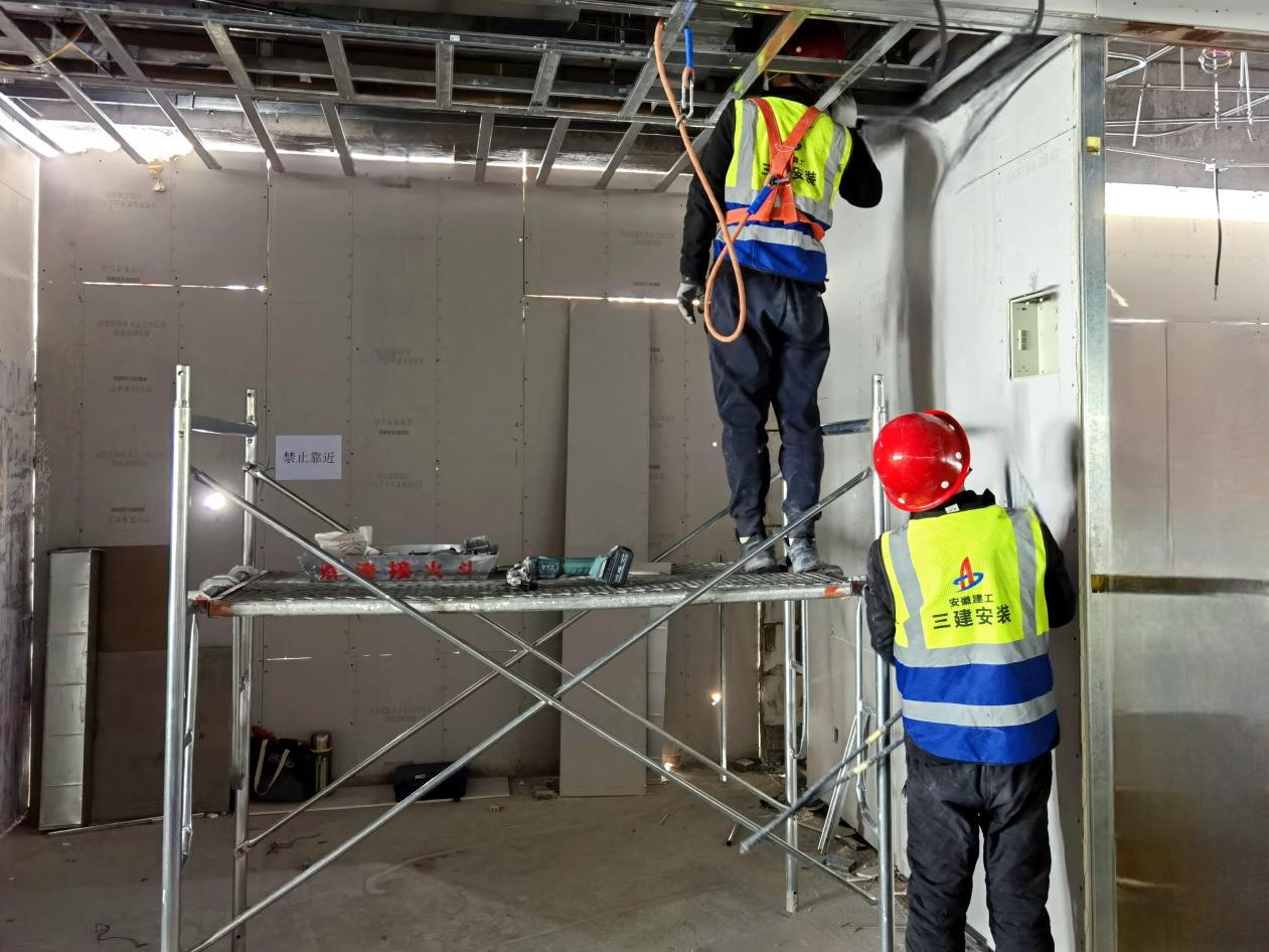 近日,在位于高鐵南站旁的安徽建工三建集團安徽(合肥)創(chuàng)新法務區(qū)項目施工現(xiàn)場,登高車來回穿梭,近800名工人正分布在不同樓層進行墻體砌筑、吊頂、焊接、安裝等工序,一派熱火朝天的大干景象,項目預計今年4月底首期完工,5月掛牌。