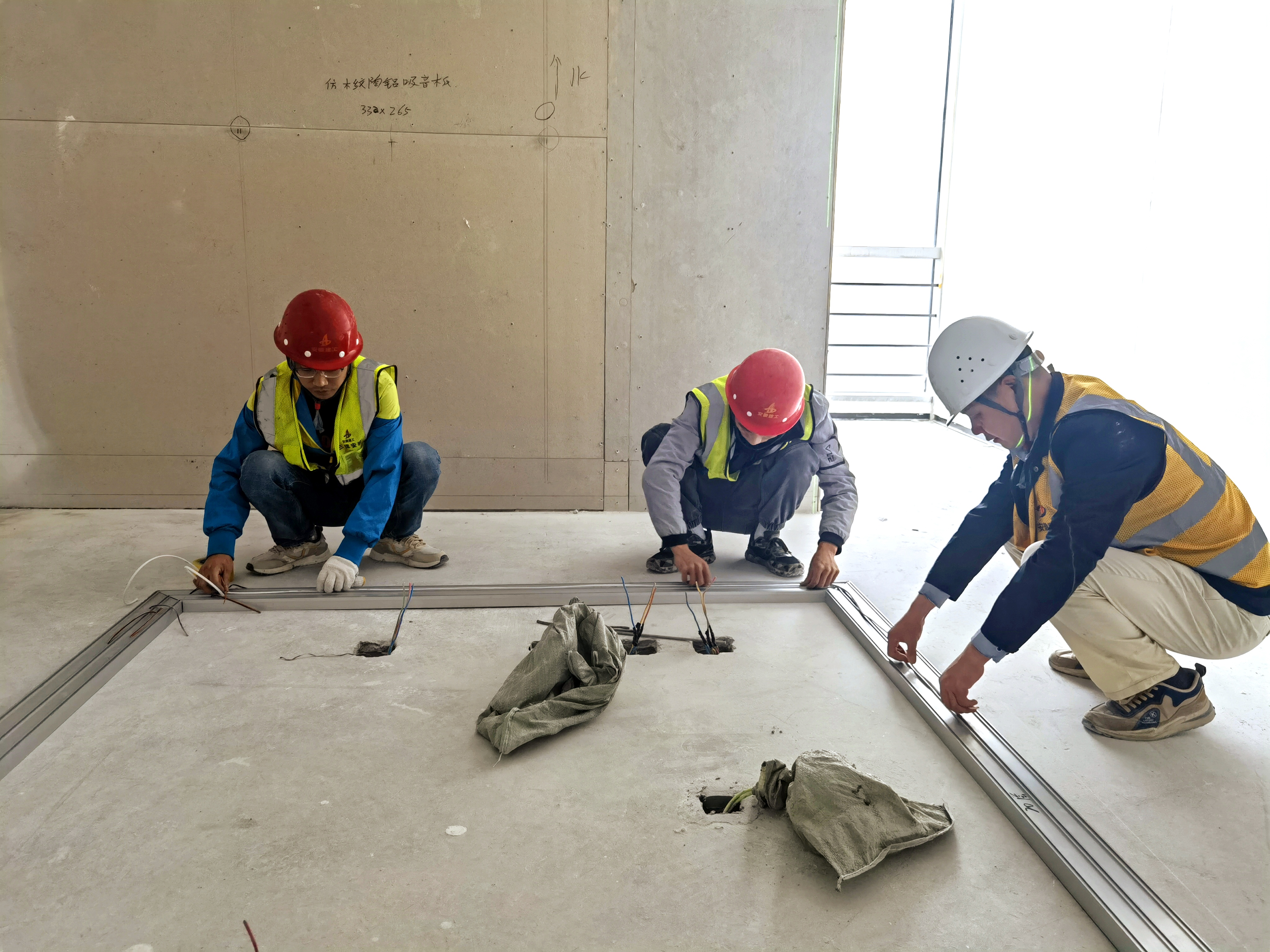 ②樓層裝飾裝修及安裝施工:輕質(zhì)隔墻已全部完成,頂面封板完成,頂面安裝工程已完成95%,正在進行機電、空調(diào)、智能化等收尾工作;墻面裝飾基層已完成,墻頂面飾面板安裝完成45%,木門安裝完成60%,核心筒外圍以及樓梯間地磚鋪貼完成,衛(wèi)生間防水已完成,衛(wèi)生間地磚鋪貼已完成,衛(wèi)生間墻磚已完成,電梯廳墻磚已完成,自流平完成95%,石塑地板安裝完成30%。