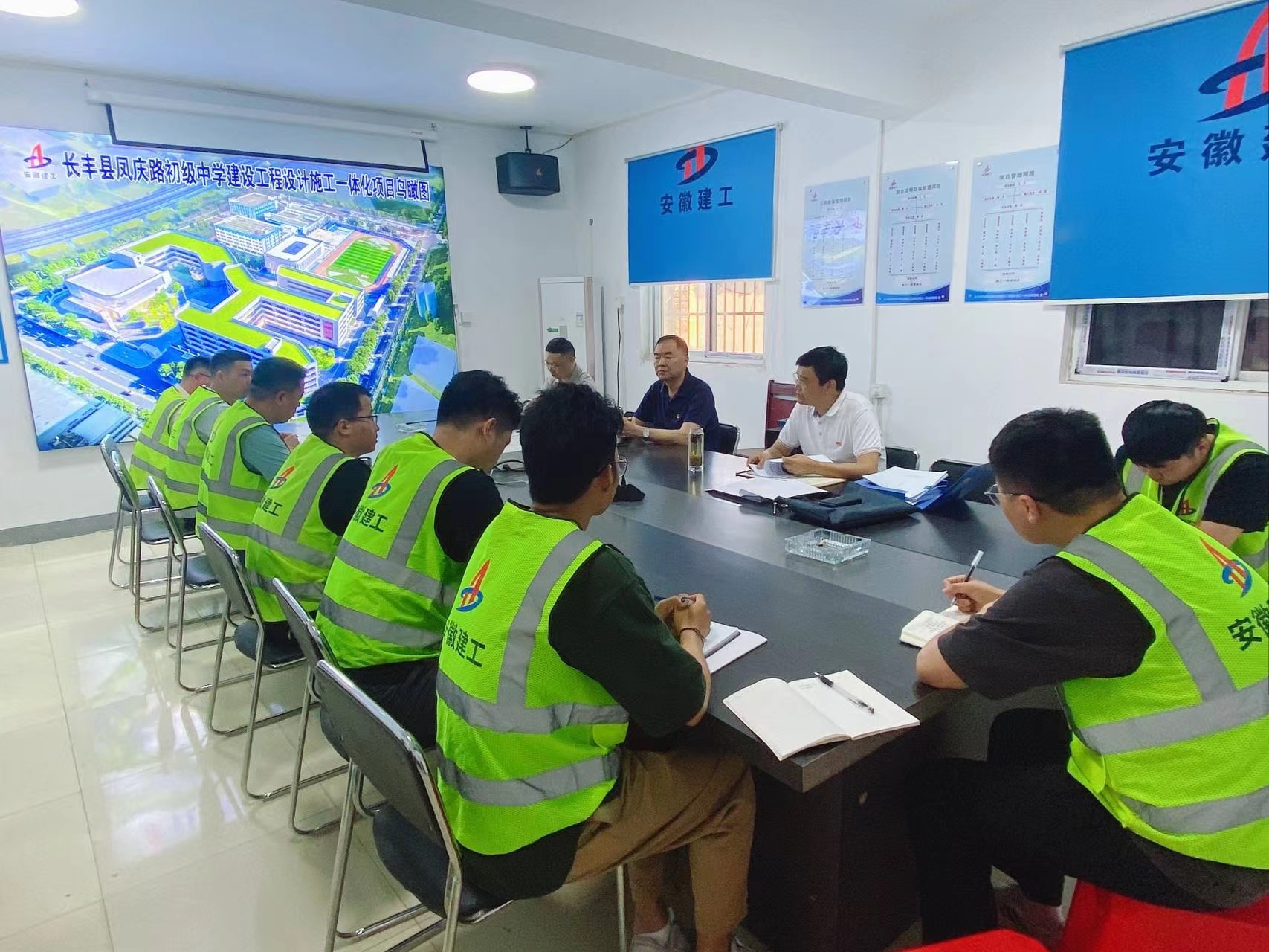 李躍進(jìn)實(shí)地察看項(xiàng)目建設(shè)情況,詳細(xì)詢問(wèn)了目前工程進(jìn)展、質(zhì)量管控、安全文明、黨紀(jì)學(xué)習(xí)教育等工作內(nèi)容,并對(duì)目前項(xiàng)目建設(shè)工作給予充分肯定。他指出,黨紀(jì)學(xué)習(xí)教育要輻射到整個(gè)項(xiàng)目班子成員,做到全面學(xué)習(xí),強(qiáng)化所有管理人員紀(jì)律意識(shí),提升廉潔自律能力,自覺(jué)規(guī)范自身行為;鳳慶路中學(xué)項(xiàng)目作為長(zhǎng)豐縣2024年度重點(diǎn)民生工程項(xiàng)目,要嚴(yán)抓安全工作、保證質(zhì)量,強(qiáng)化項(xiàng)目管理,凝聚團(tuán)隊(duì)力量,迎難而上,真抓實(shí)干,確保建設(shè)高品質(zhì)工程;同時(shí)要關(guān)心員工日常生活情況,及時(shí)解決發(fā)生的困難,提升員工工作幸福感。