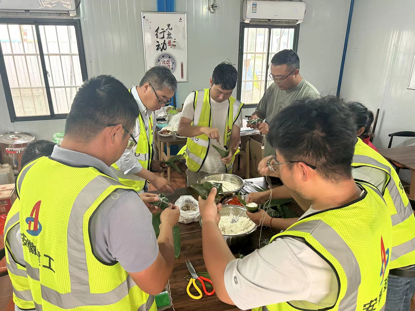 在霍邱縣行蓄洪區(qū)五標段項目部,全體管理人員利用晚飯時間間隙,組織開展包粽子活動,豐富職工業(yè)余生活,增強項目凝聚力。