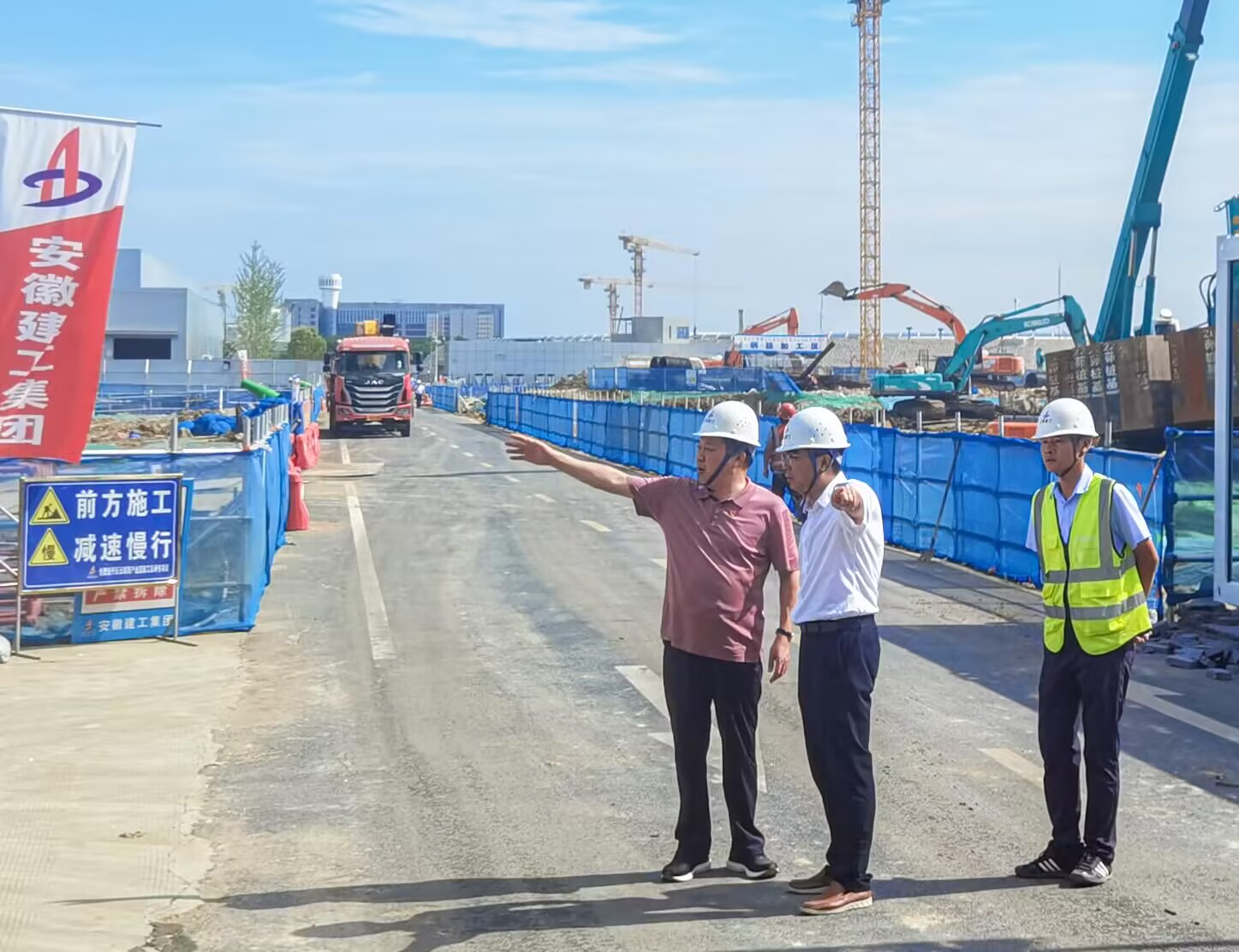 何洪春深入一線施工現(xiàn)場(chǎng),詳細(xì)了解了項(xiàng)目施工進(jìn)展、質(zhì)量管控、安全文明、目前面臨的挑戰(zhàn)等方面情況。就如何高質(zhì)量推進(jìn)項(xiàng)目建設(shè),何洪春強(qiáng)調(diào),一是要統(tǒng)籌項(xiàng)目進(jìn)度,精準(zhǔn)把控施工的關(guān)鍵節(jié)點(diǎn),確保施工流程有序轉(zhuǎn)換,最大程度提升施工效率和質(zhì)量;二是要時(shí)刻繃緊安全生產(chǎn)之弦,切實(shí)把安全生產(chǎn)工作做細(xì)、做實(shí)、做到位,全力筑牢安全生產(chǎn)防線,扎實(shí)做好揚(yáng)塵治理等環(huán)境保護(hù)措施,創(chuàng)建安全文明示范工地;三是要在保證項(xiàng)目質(zhì)量的前提下,優(yōu)化資源配置,提高資金使用效率,做好成本管控;四是雨季即將來(lái)臨,要密切監(jiān)測(cè)天氣變化,提前做好防汛準(zhǔn)備工作,制定汛期專項(xiàng)應(yīng)急預(yù)案,合理安排施工。