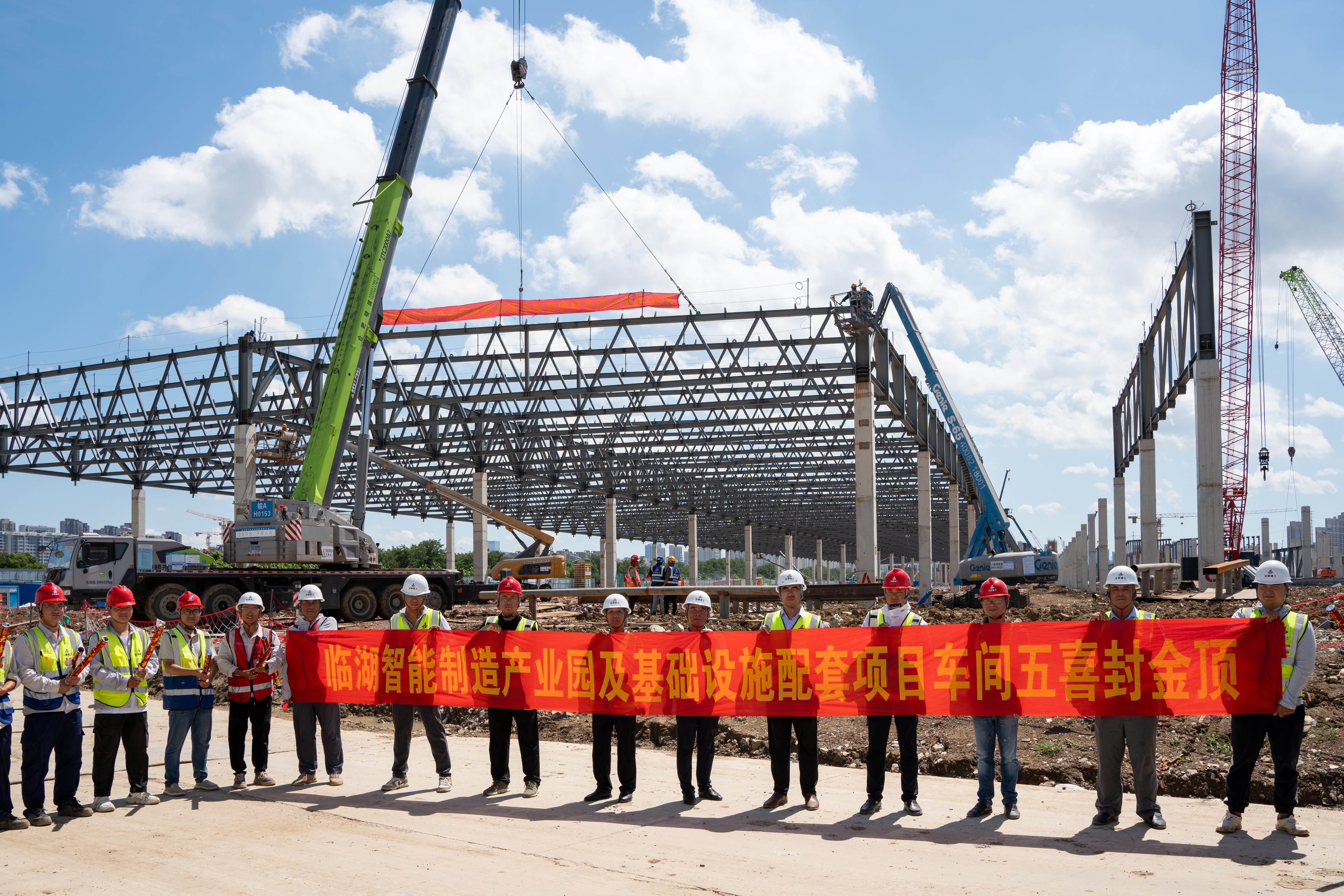 高質(zhì)量 高效率丨提前23天!安徽建工臨湖智能制造產(chǎn)業(yè)園項目車間五順利封頂