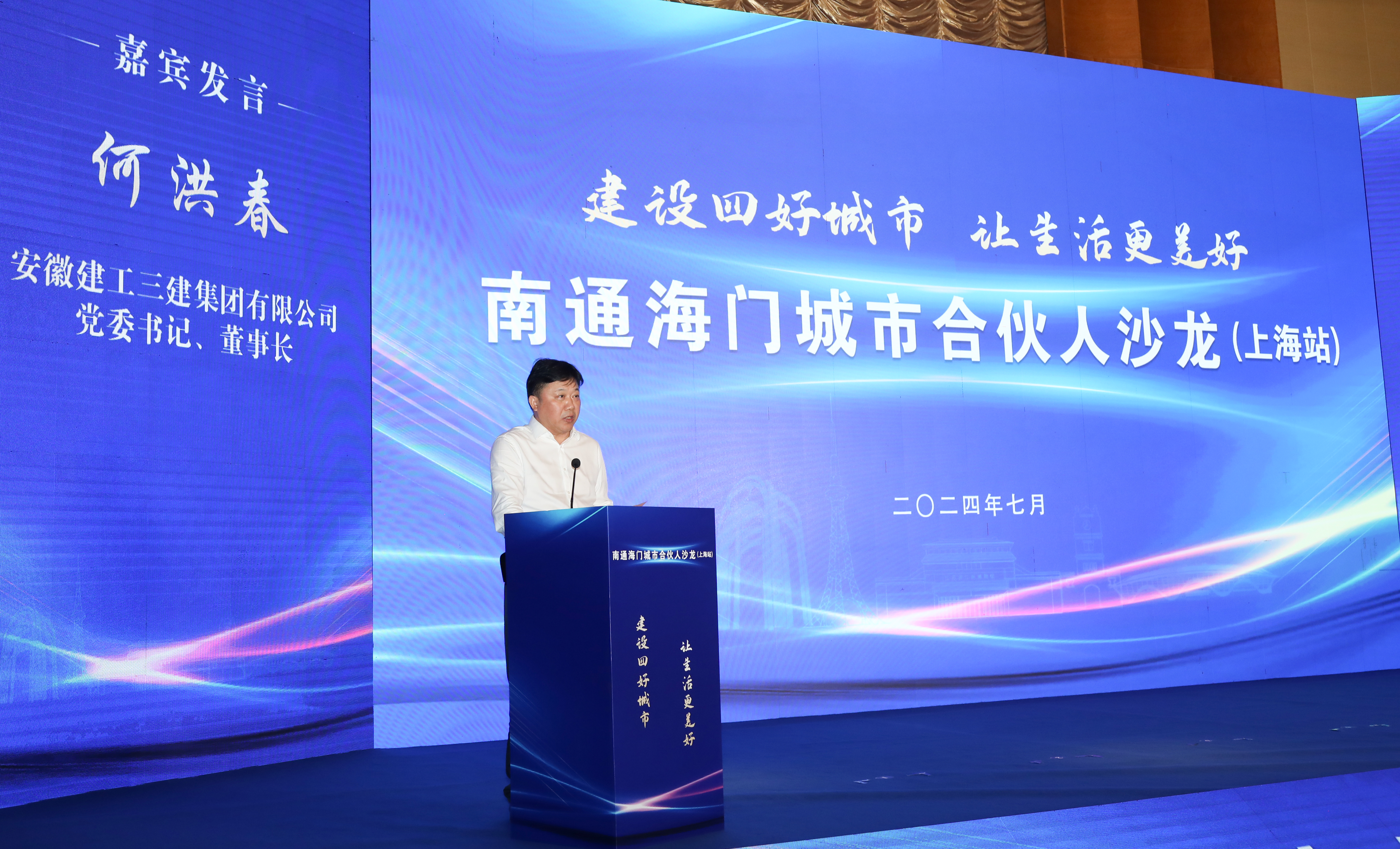 7月28日下午,由南通市海門區(qū)委區(qū)政府舉辦,以“建設(shè)四好城市,讓生活更美好”為主題的海門城市合伙人沙龍?jiān)谏虾U匍_。海門區(qū)委副書記、區(qū)長(zhǎng)沈旭東,副區(qū)長(zhǎng)周國強(qiáng)、張文錦出席活動(dòng)。公司黨委書記、董事長(zhǎng)何洪春受邀出席并作為嘉賓代表交流發(fā)言,公司黨委副書記、總經(jīng)理谷建偉與江蘇海晟集團(tuán)副董事長(zhǎng)、總經(jīng)理許佳華代表雙方簽約。