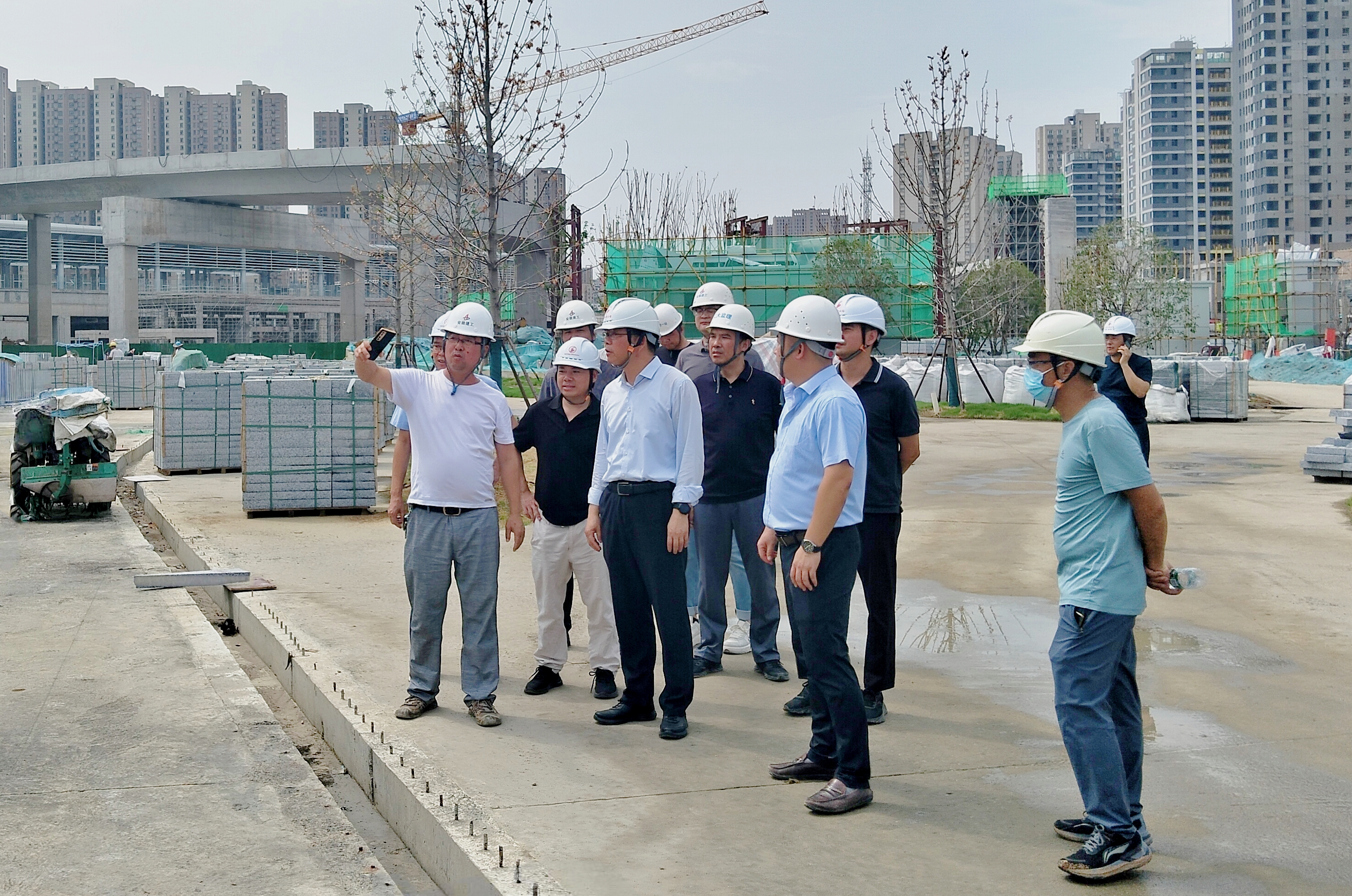 張剛一行實(shí)地查看工程建設(shè)進(jìn)展,并對(duì)項(xiàng)目現(xiàn)場(chǎng)安全文明施工和質(zhì)量管控工作表示充分肯定。張剛指出,合肥市西站西廣場(chǎng)項(xiàng)目是合肥市乃至安徽省重要民生工程,一是要堅(jiān)持以人為本,監(jiān)理單位和施工單位要結(jié)合項(xiàng)目實(shí)際,積極與設(shè)計(jì)院保持溝通,進(jìn)一步提升質(zhì)量、優(yōu)化布局、節(jié)約資源。二是要嚴(yán)格落實(shí)安全生產(chǎn)責(zé)任制,持續(xù)做好夏季高溫天氣防暑降溫工作,確保工程平穩(wěn)有序推進(jìn)。三是要加強(qiáng)項(xiàng)目精細(xì)化管理,以匠心鑄精品,再接再厲打好收官戰(zhàn),早日將項(xiàng)目打造成一個(gè)群眾滿(mǎn)意的地標(biāo)性工程。