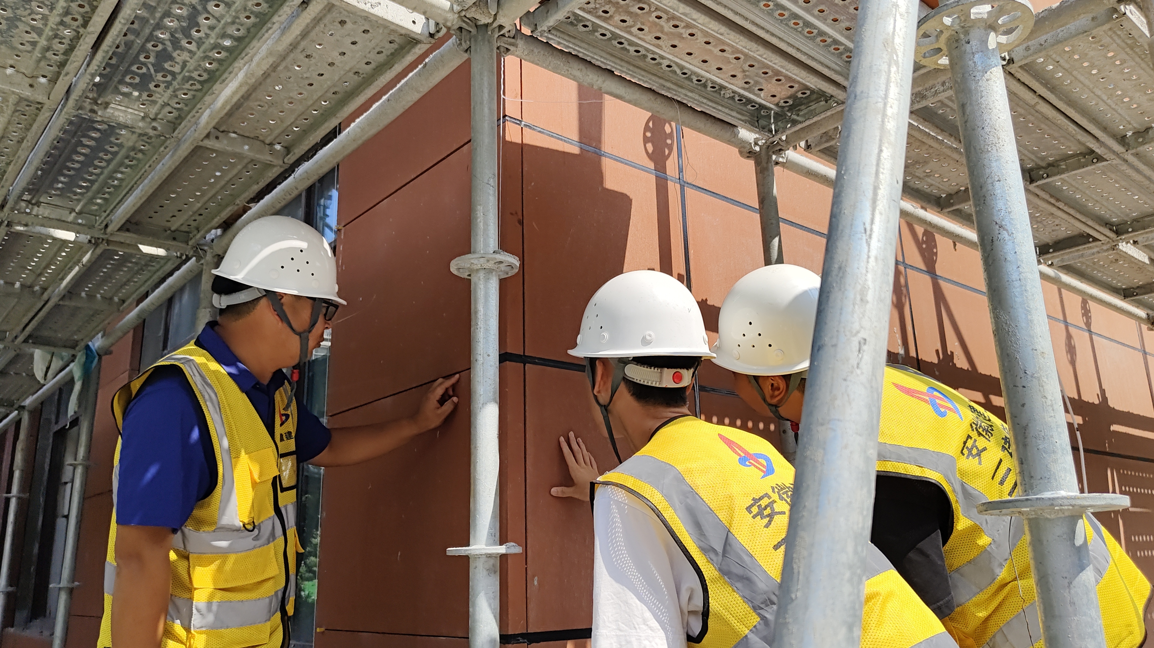 項目團(tuán)隊每天召開現(xiàn)場碰頭會,總結(jié)當(dāng)日工作量,安排次日計劃,嚴(yán)格執(zhí)行當(dāng)日事、當(dāng)日畢的要求。每周檢查進(jìn)度計劃完成情況,對比分析計劃節(jié)點,及時調(diào)整施工策略,確保項目進(jìn)度始終處于可掌控的狀態(tài)。項目僅用5天完成6.5萬平方米外架搭設(shè),6天完成6萬平方米外墻拆除,2.3萬平方米衛(wèi)生間拆除,15天完成3.6萬平方米現(xiàn)場保溫一體板施工、2.5萬平方米裝飾砂漿。項目團(tuán)隊不懼酷熱不斷刷新著項目建設(shè)進(jìn)度條。最終,如期完成首個節(jié)點任務(wù)。