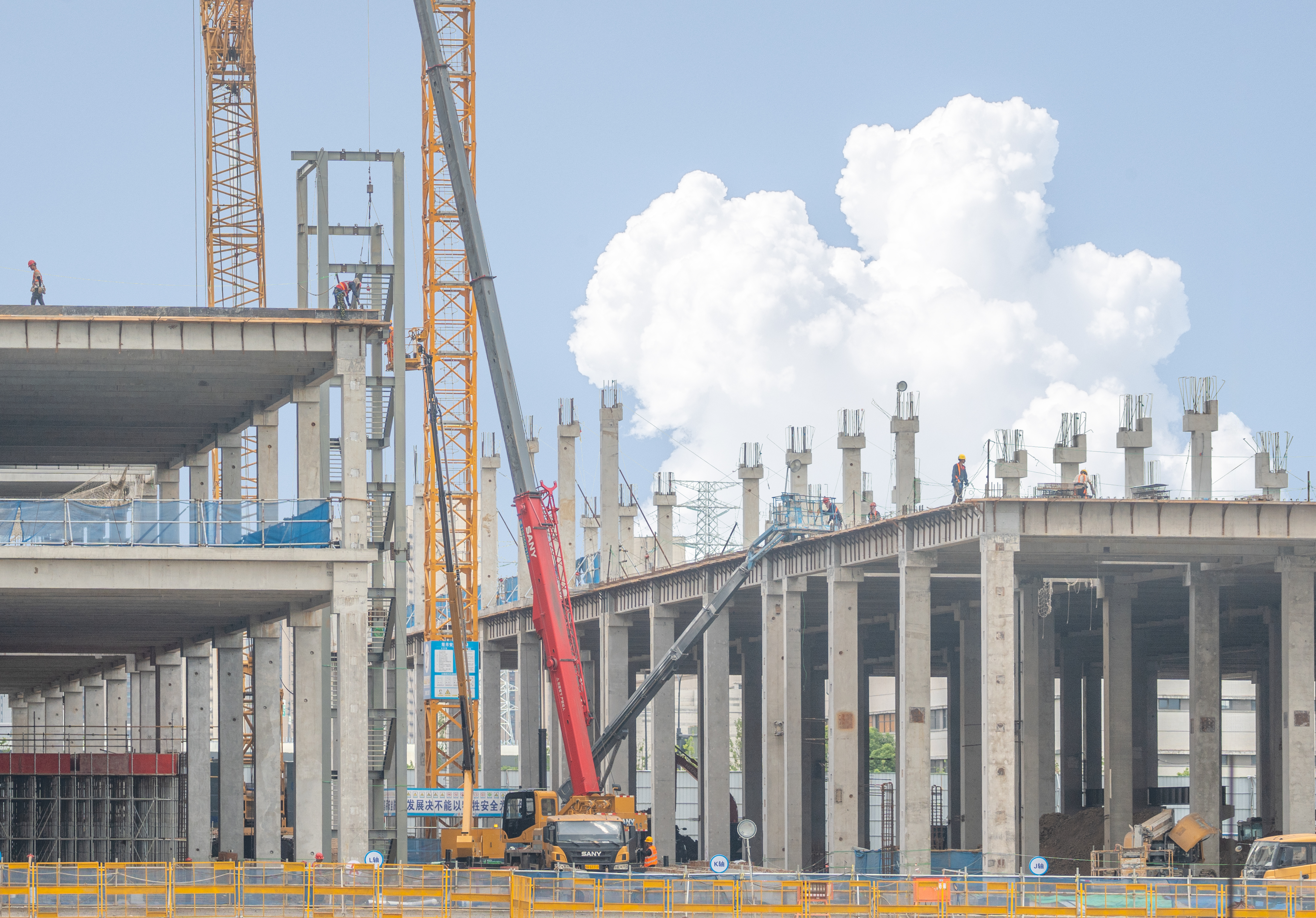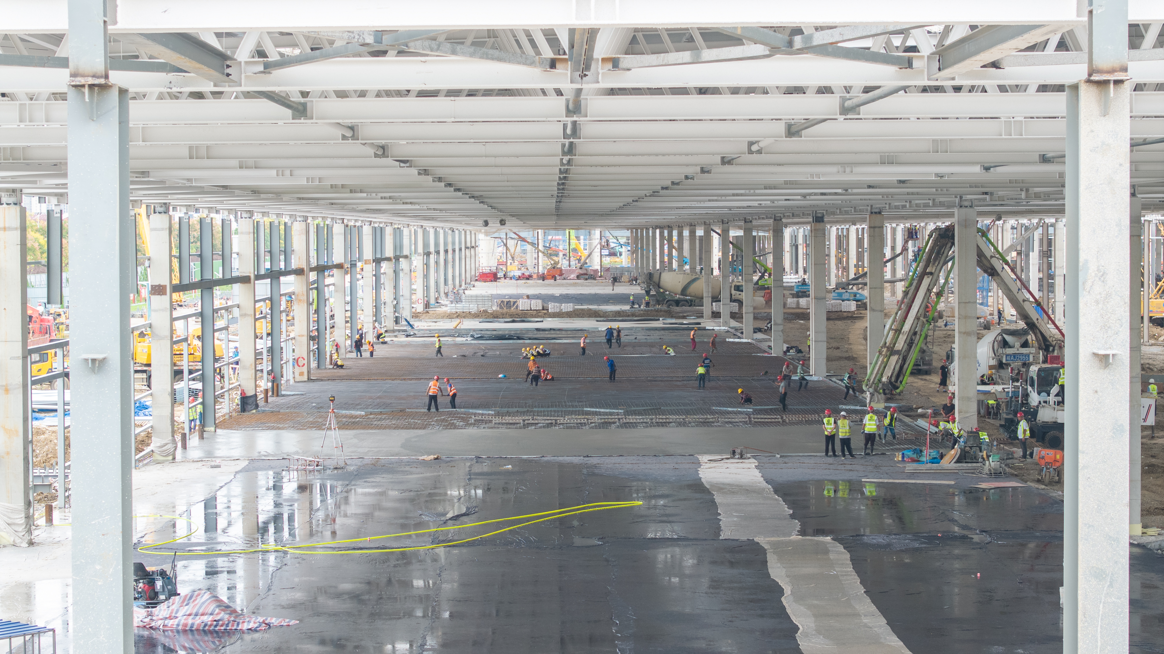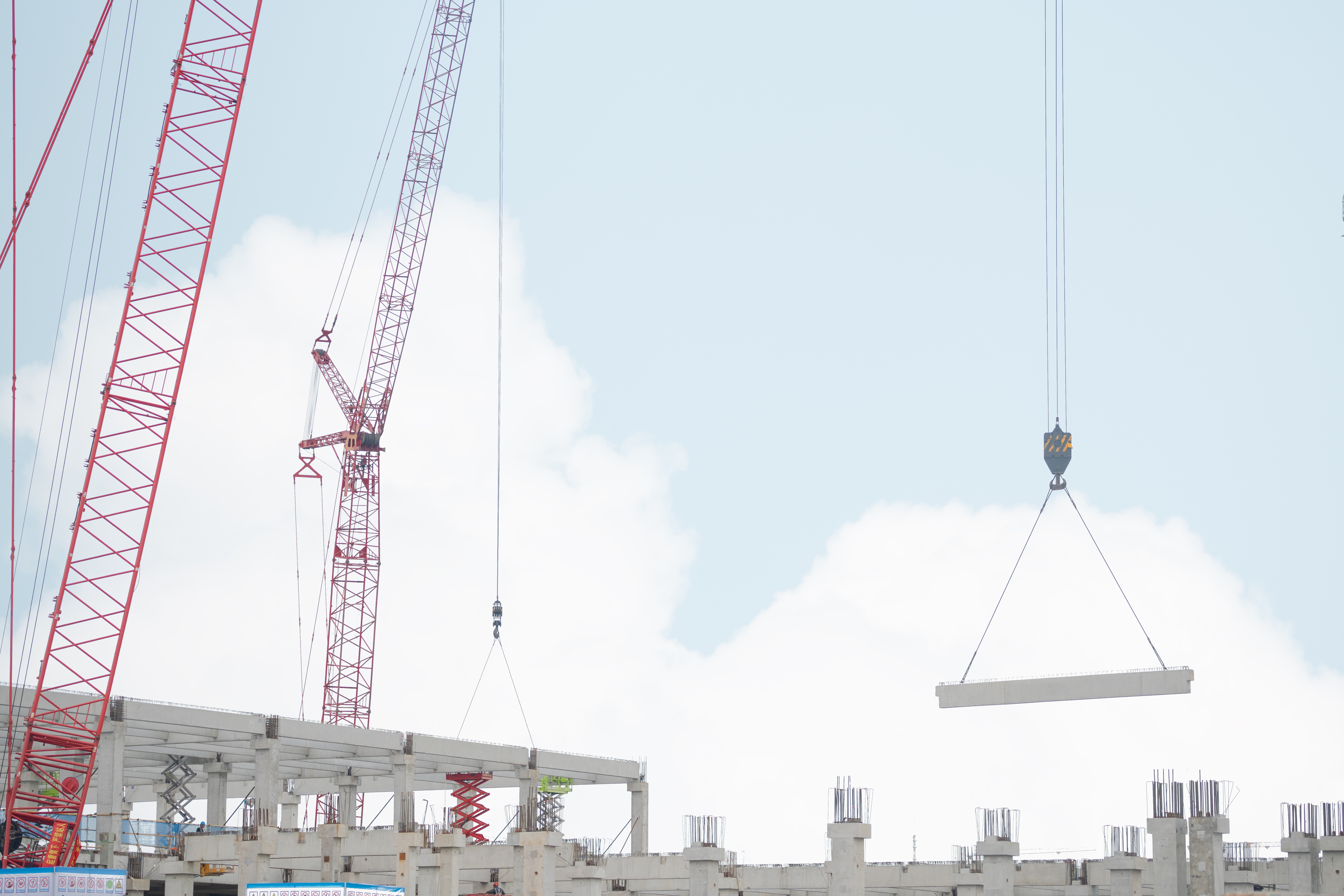 車間一一層地坪施工完成50%,車間二一層地坪施工完畢,車間三一層地坪開始施工;車間一、車間二預制構件除屋面設備機房外吊裝完畢;車間三二層預制柱吊裝完成(81/139)根,二層預制梁吊裝完成(133/590)跨;三層預制柱吊裝完成(28/109)根,三層預制梁吊裝完成(9/498)跨。