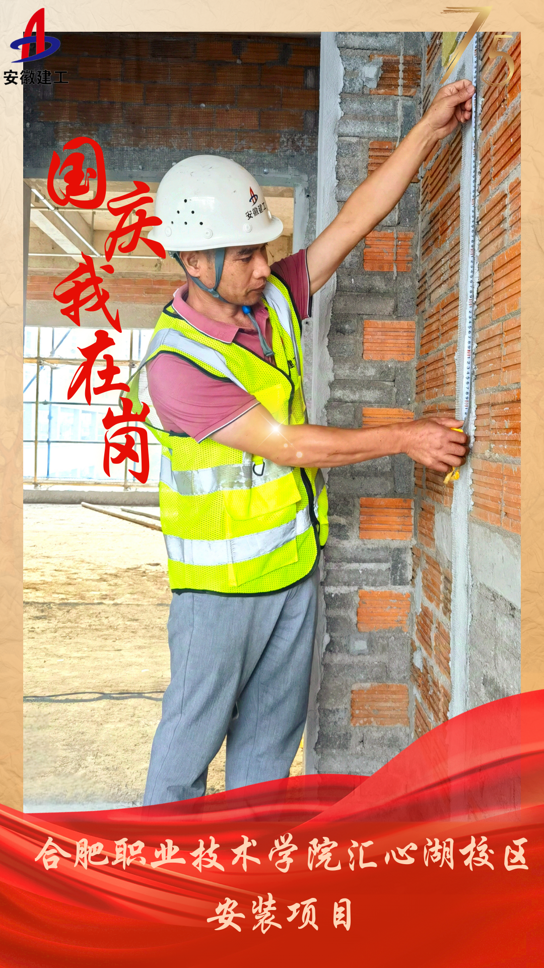 合肥職業(yè)技術(shù)學院匯心湖校區(qū)安裝項目管理人員正在對配電箱標高進行復核。