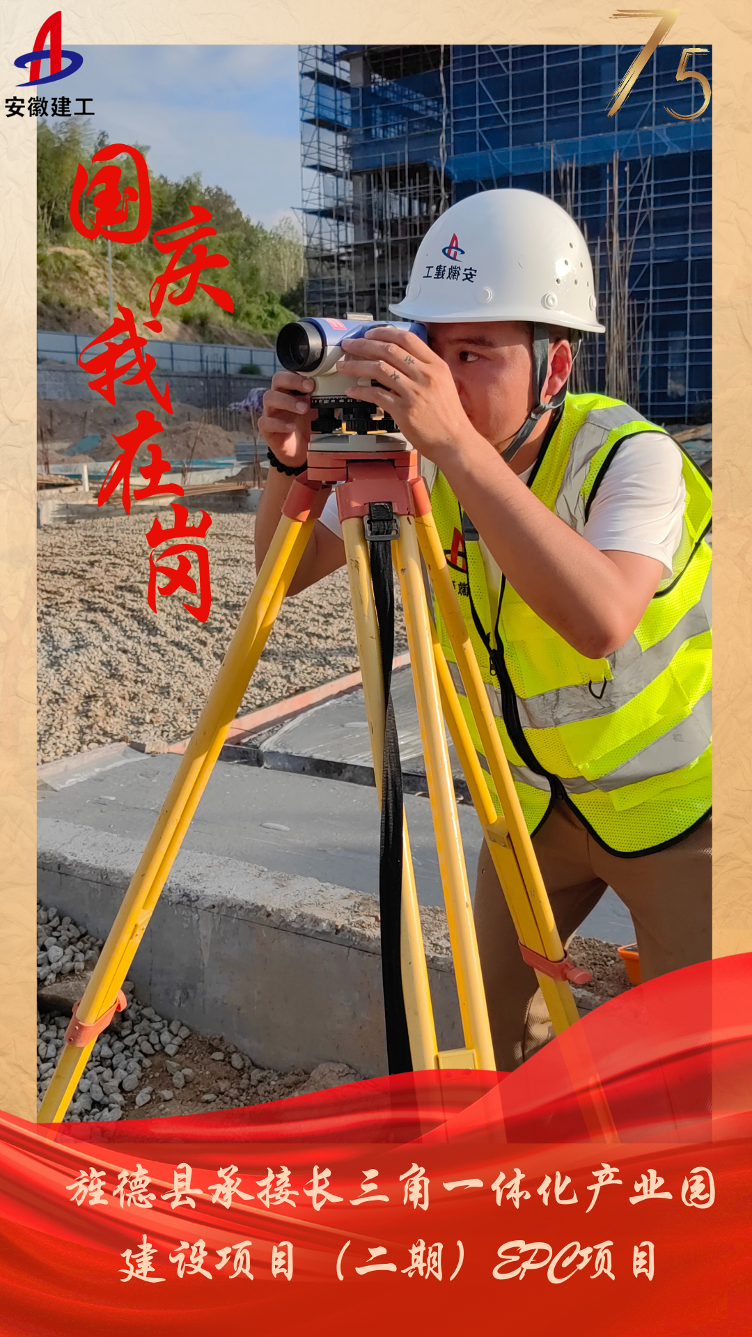 旌德縣承接長三角一體化產(chǎn)業(yè)園建設(shè)項目(二期)EPC項目施工員陳正正在進(jìn)行地坪碎石墊層抄平工作。