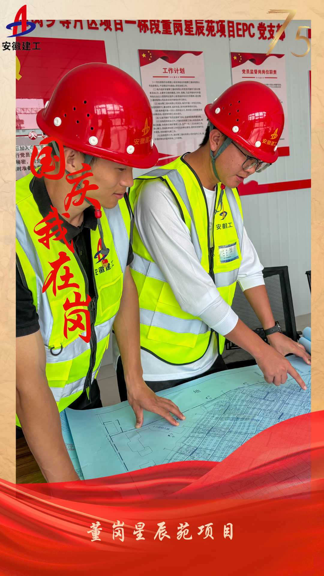 董崗星辰苑項目值班人員胡濤和李小會將現(xiàn)場施工與圖紙仔細對照,嚴格把控工程質(zhì)量和施工工序。
