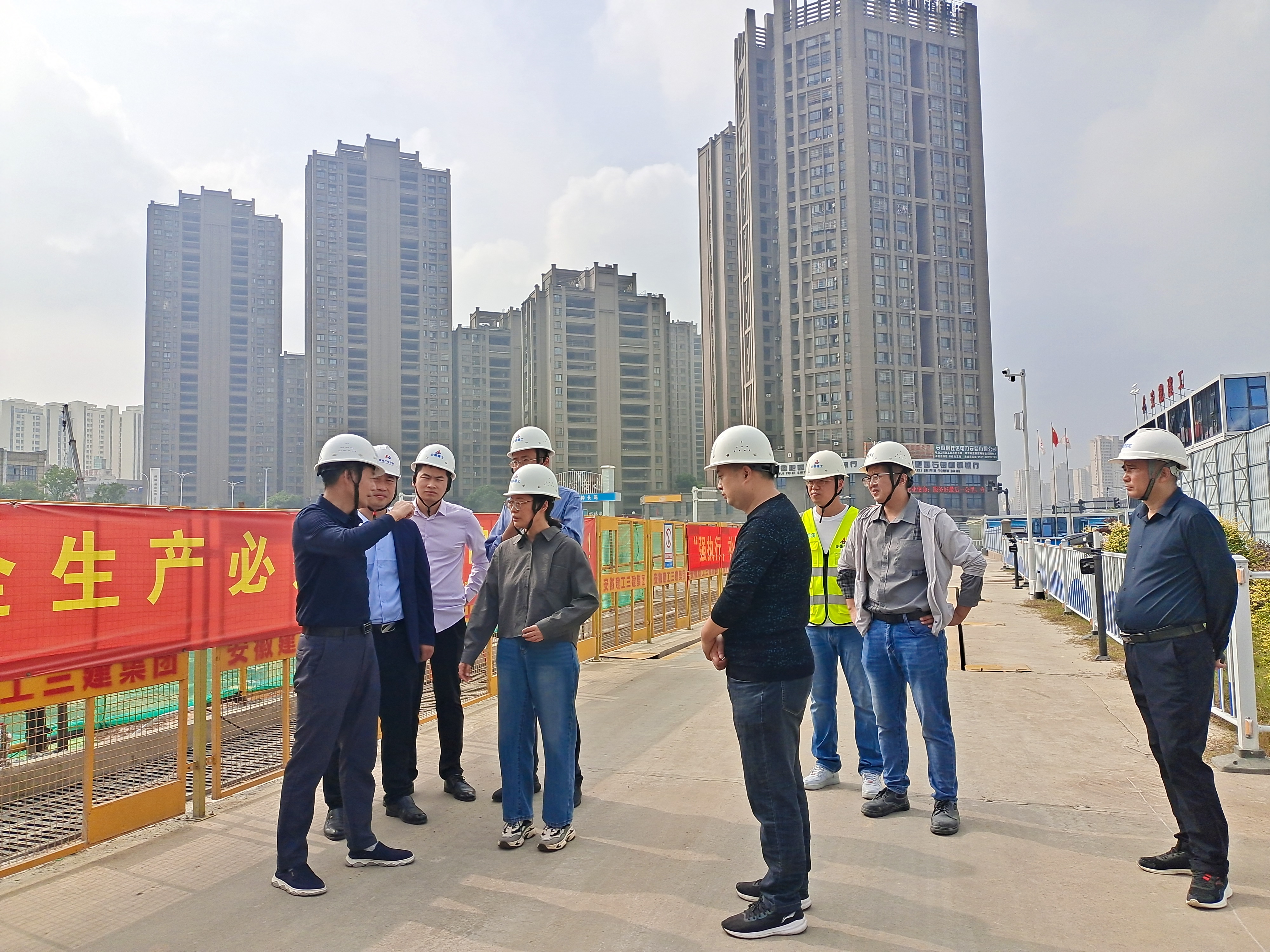 10月15日,肥西縣副縣長何欣欣率縣委督查中心、縣生態(tài)環(huán)境分局、縣住建局到公司承建的肥西202271號商業(yè)地塊項目開展揚塵治理專項檢查。
