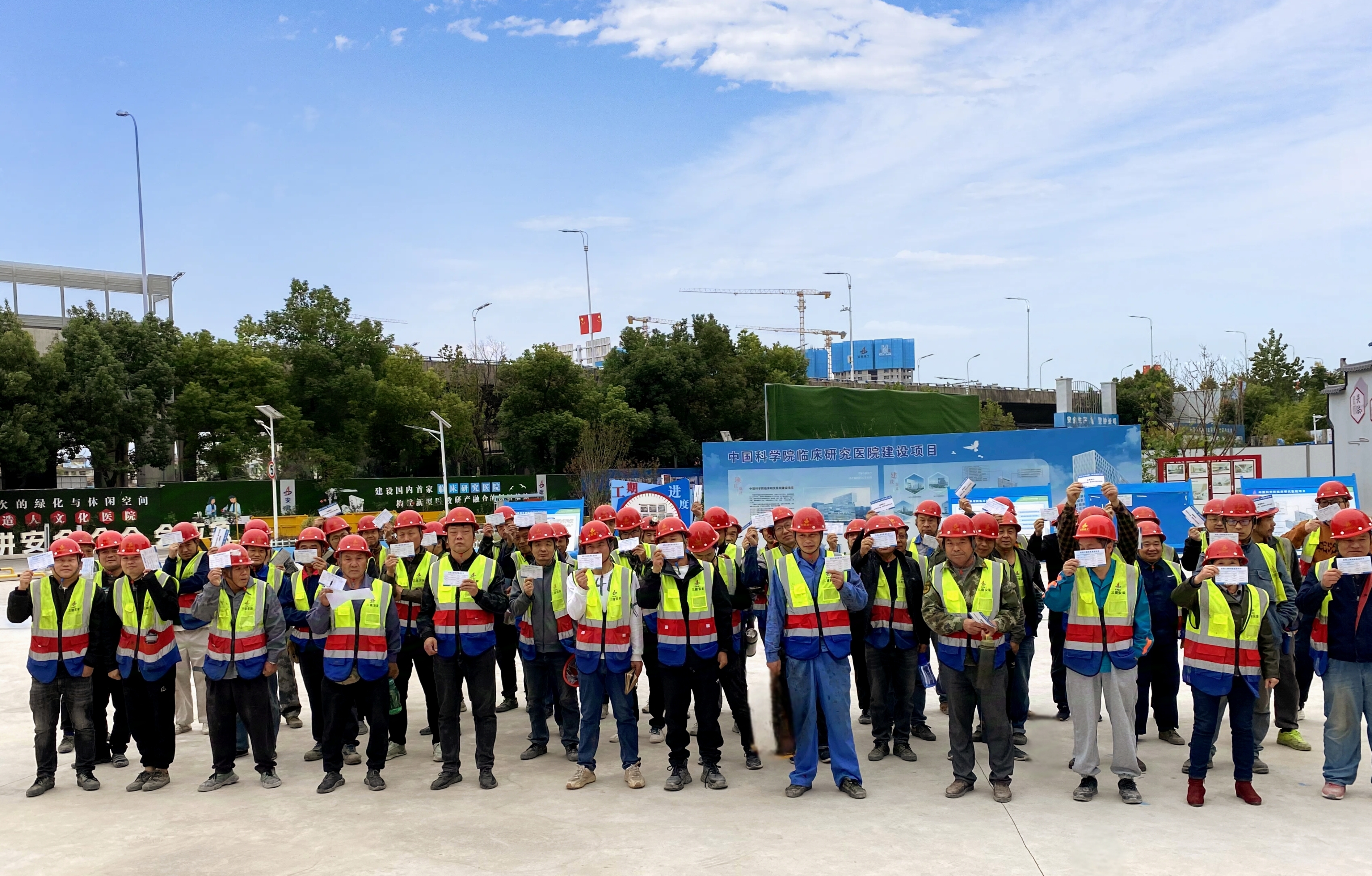 中科院臨床研究醫(yī)院安裝項(xiàng)目部為工友發(fā)放農(nóng)民工維權(quán)信息告示卡