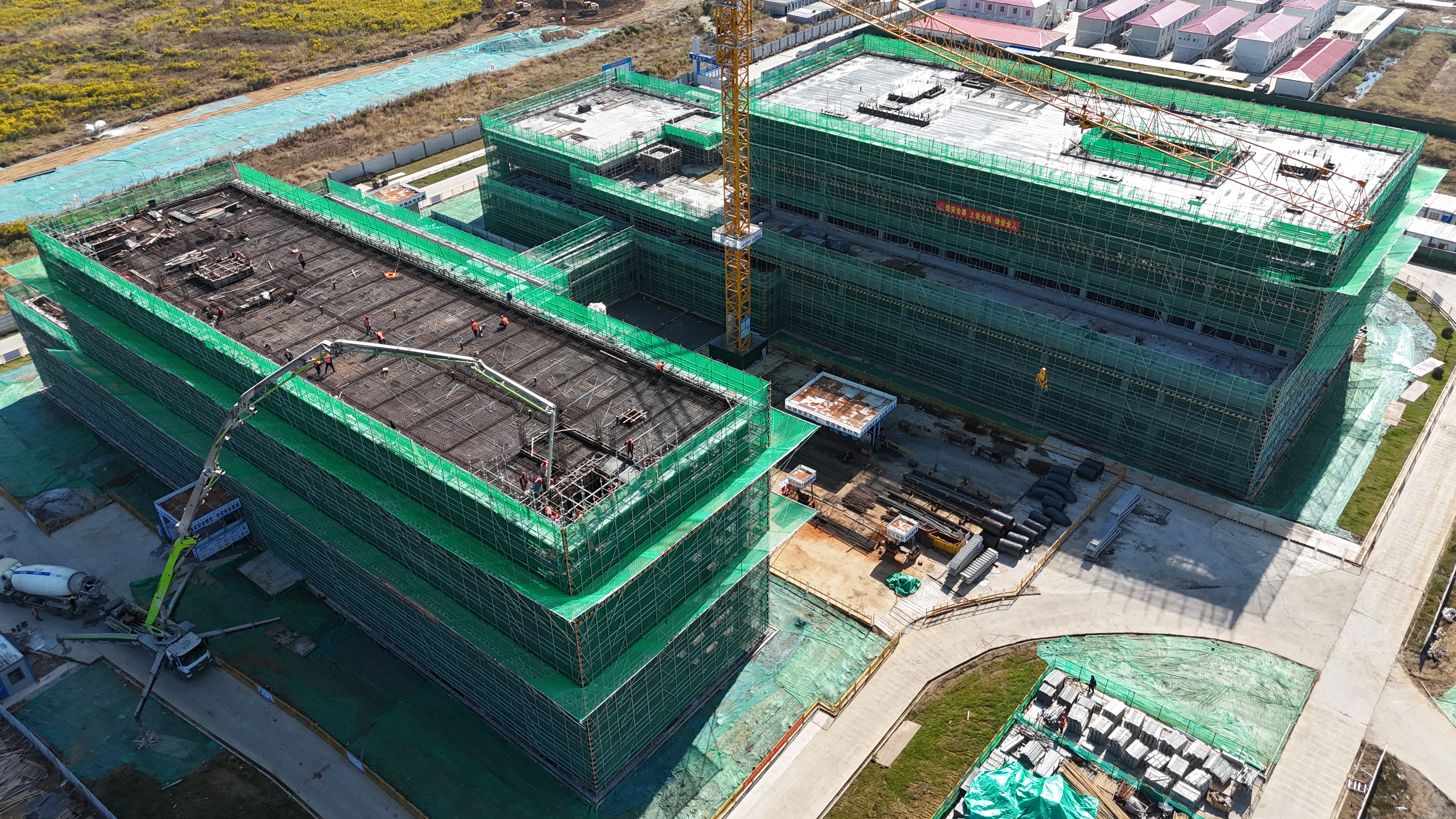10月30日上午,隨著最后一方混凝土的澆筑完成,標(biāo)志著合肥先進(jìn)光源配套工程項(xiàng)目綜合科研樓與生活服務(wù)樓主體結(jié)構(gòu)全面封頂。