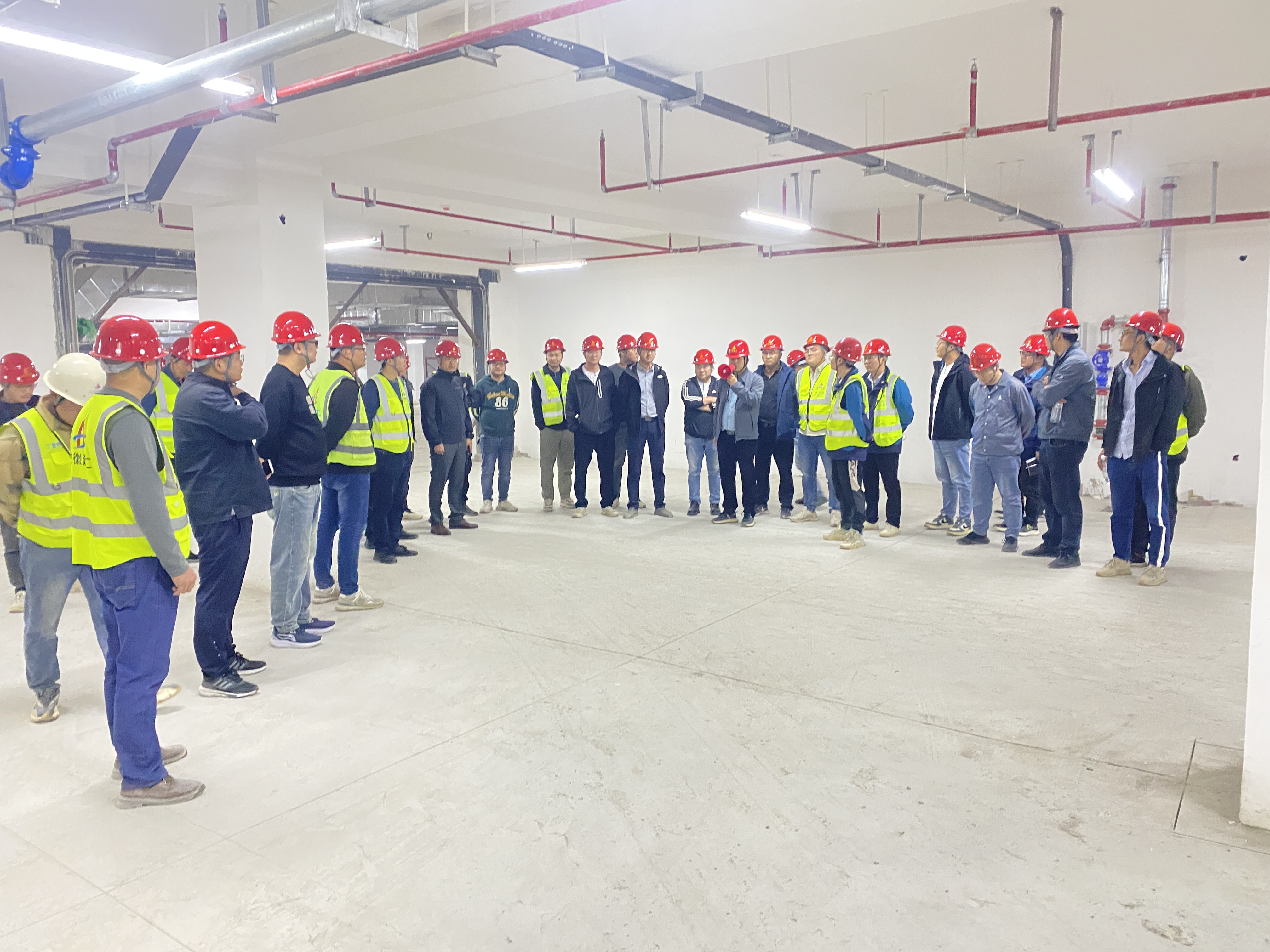 觀摩人員深入項(xiàng)目現(xiàn)場(chǎng),詳細(xì)聽取了項(xiàng)目技術(shù)負(fù)責(zé)人對(duì)施工前的樣板做法及調(diào)整方案的介紹,并就地下室地坪施工的事前、事中、事后三個(gè)階段可能遇到的問(wèn)題和挑戰(zhàn)進(jìn)行了深入探討。