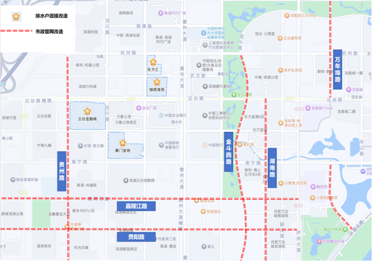 兩項目主要內容為東方匯、錦繡淮苑等10個排水戶雨污分流改造工程,貴州路、包河大道、廬州大道等12條主要道路的排水管網(wǎng)建設,全流域雨污水排水管網(wǎng)排查復查檢測。目前,項目管理人員正在進行前期相關手續(xù)報建等準備工作。