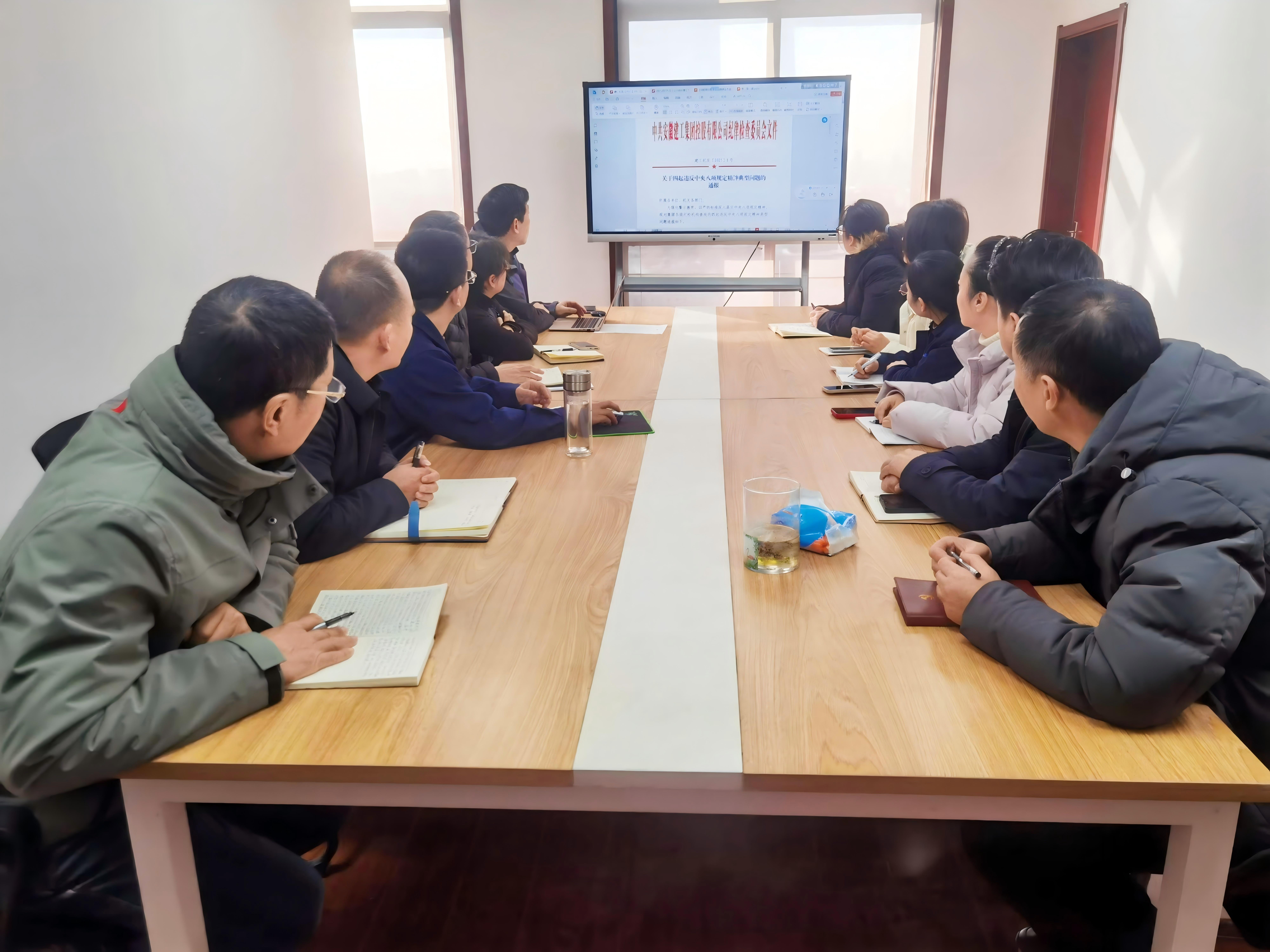 除了安全警示,廉政教育同樣不可或缺?;顒蛹袑W習了建工紀發(fā)〔2025〕1號文,通過近年來發(fā)生的腐敗案例,深刻剖析了腐敗行為對項目進度、質量及企業(yè)形象的嚴重損害。會議要求全體職工要樹立正確的價值觀,堅決抵制各種誘惑,共同維護企業(yè)的廉潔環(huán)境。
