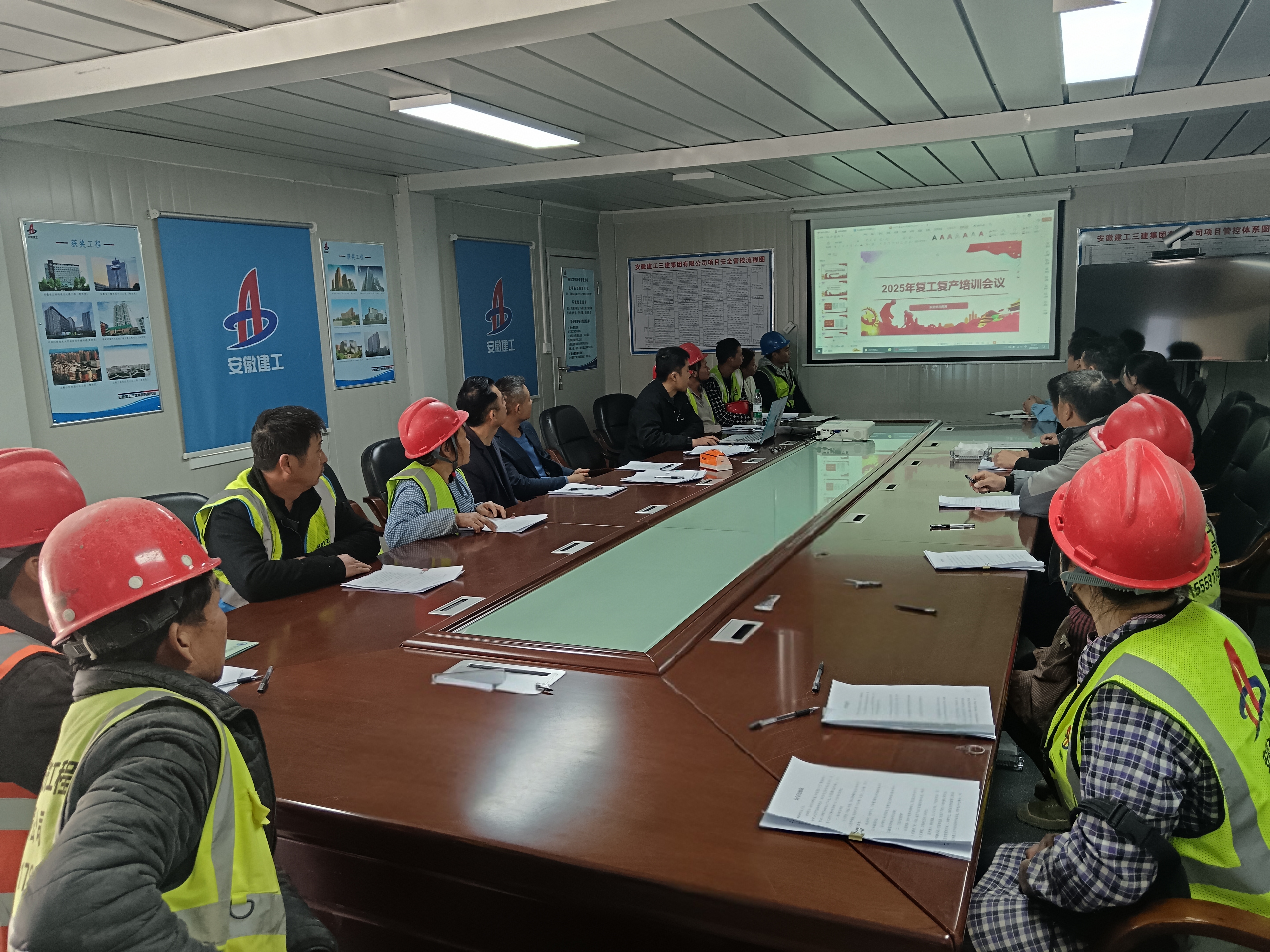 會議對項目復工復產安全工作作具體要求,項目主要管理人員要第一時間返崗履職,對全體員工進行了安全培訓,強調對施工中的各項安全規(guī)范進行全員復工教育,觀看防線警示教育視頻,并對返崗工人重新開展三級安全教育,與會人員觀看了“復工第一課”安全教育視頻。