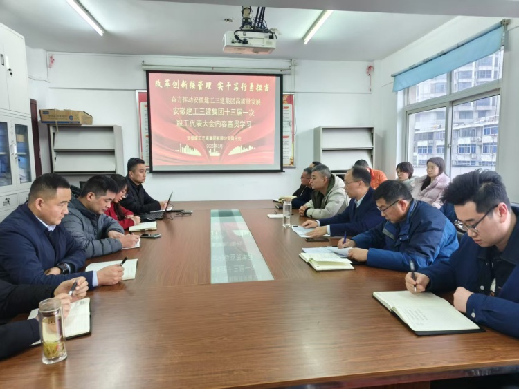 近日,安徽建工集團(tuán)控股有限公司三屆二次職工代表大會(huì)暨2025年工作會(huì)議和安徽建工三建集團(tuán)有限公司十三屆一次職代會(huì)暨2025年工作會(huì)議勝利召開(kāi)。會(huì)后,建工三建所屬各單位迅速掀起學(xué)習(xí)宣貫熱潮,確保兩級(jí)職代會(huì)精神傳達(dá)到每一位職工,進(jìn)一步統(tǒng)一思想、凝心聚力,推動(dòng)公司高質(zhì)量發(fā)展,為集團(tuán)轉(zhuǎn)型發(fā)展、高質(zhì)量發(fā)展、大發(fā)展貢獻(xiàn)力量。
