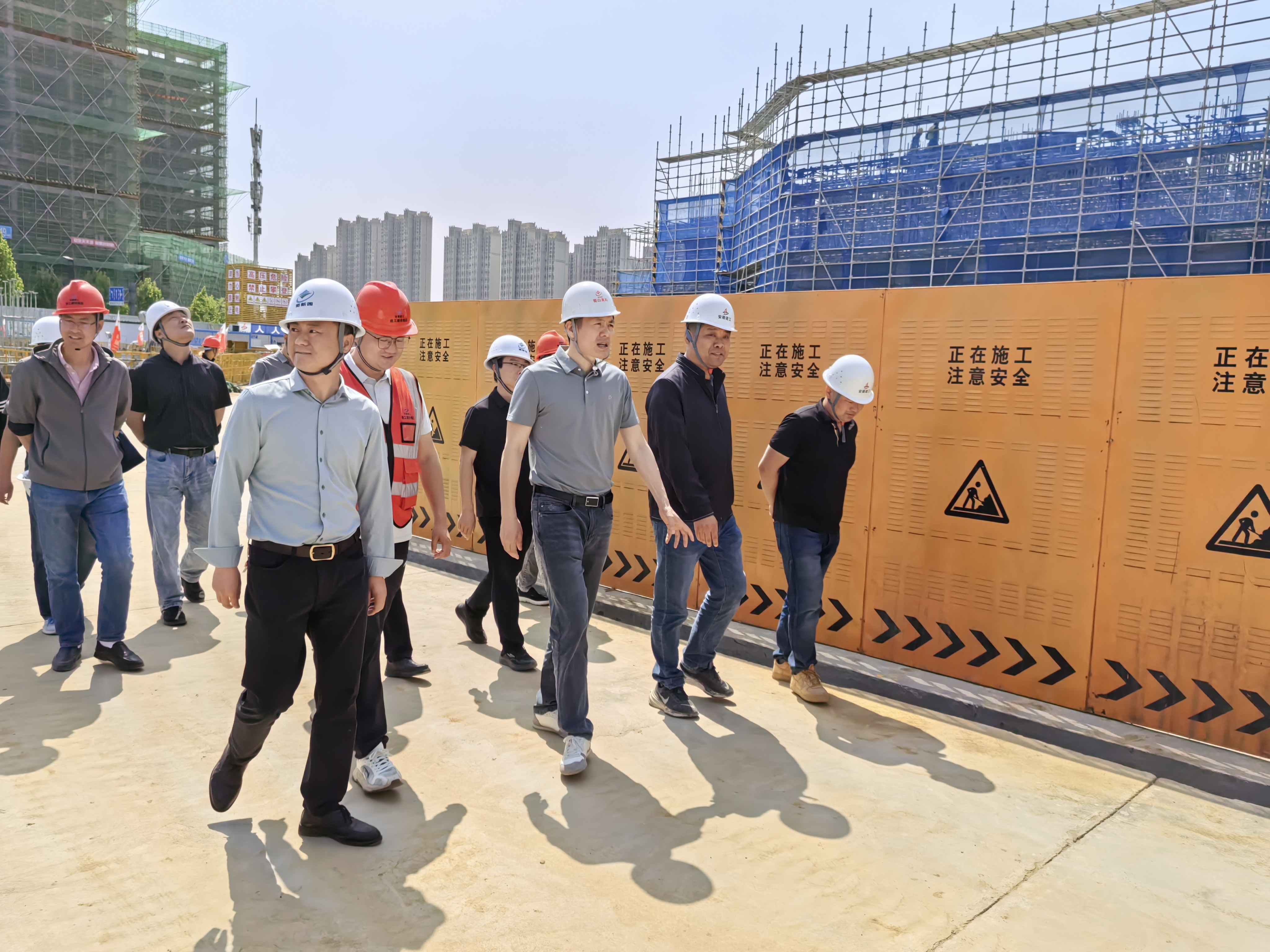陳凱龍一行深入項(xiàng)目現(xiàn)場(chǎng),聽取項(xiàng)目關(guān)于施工進(jìn)度、安全管理、質(zhì)量控制等方面的匯報(bào),實(shí)地查看了8#樓一層墻柱頂梁板、9#樓基礎(chǔ)、10#樓負(fù)一層墻柱頂梁板等作業(yè)面,并對(duì)項(xiàng)目現(xiàn)階段取得的成績(jī)表示肯定。陳凱龍強(qiáng)調(diào),高科·模數(shù)科技港項(xiàng)目是重點(diǎn)工程,必須始終堅(jiān)持“安全第一、質(zhì)量為本”的原則,一是要嚴(yán)格落實(shí)全員安全生產(chǎn)責(zé)任制,加強(qiáng)風(fēng)險(xiǎn)防控,杜絕麻痹思想;二是強(qiáng)化過(guò)程監(jiān)督,注重細(xì)節(jié)打磨,打造精品工程;三是科學(xué)統(tǒng)籌資源配置,確保項(xiàng)目按期交付。檢查期間,陳凱龍與一線施工人員親切交流,并叮囑項(xiàng)目部做好后勤保障,為工人創(chuàng)造安全、舒適的工作環(huán)境